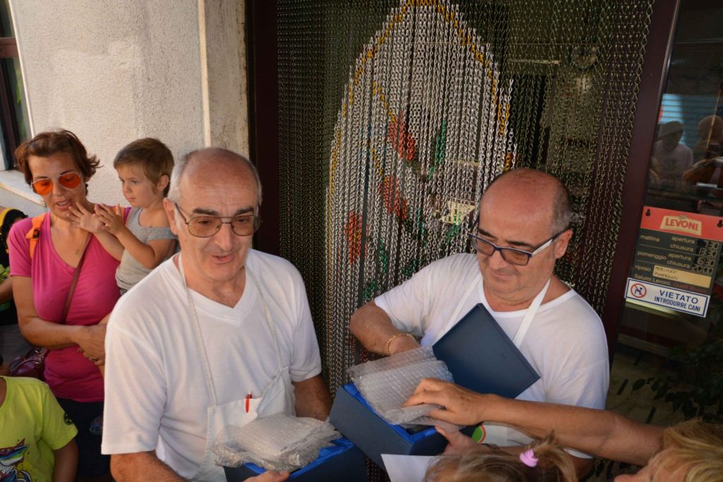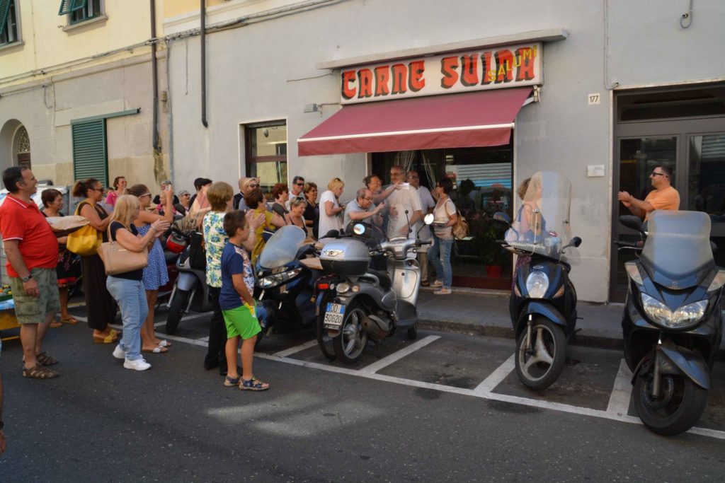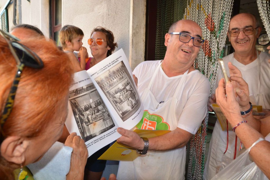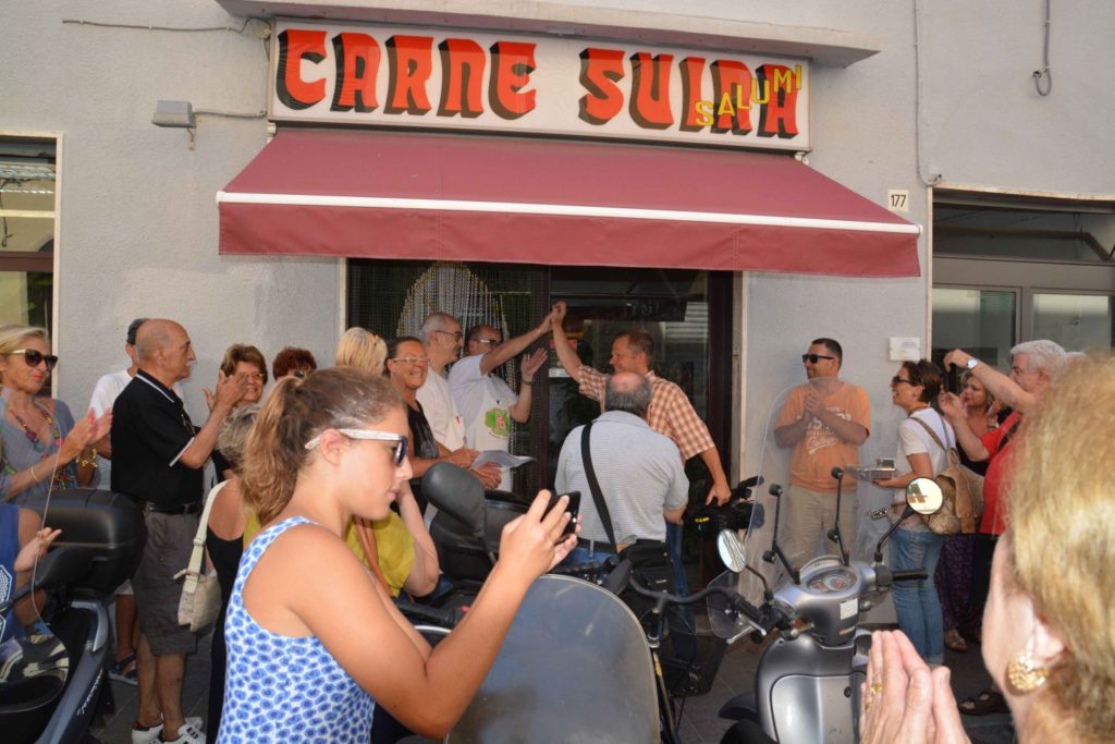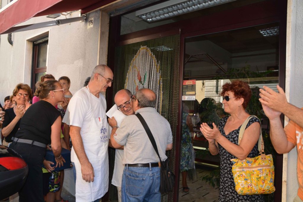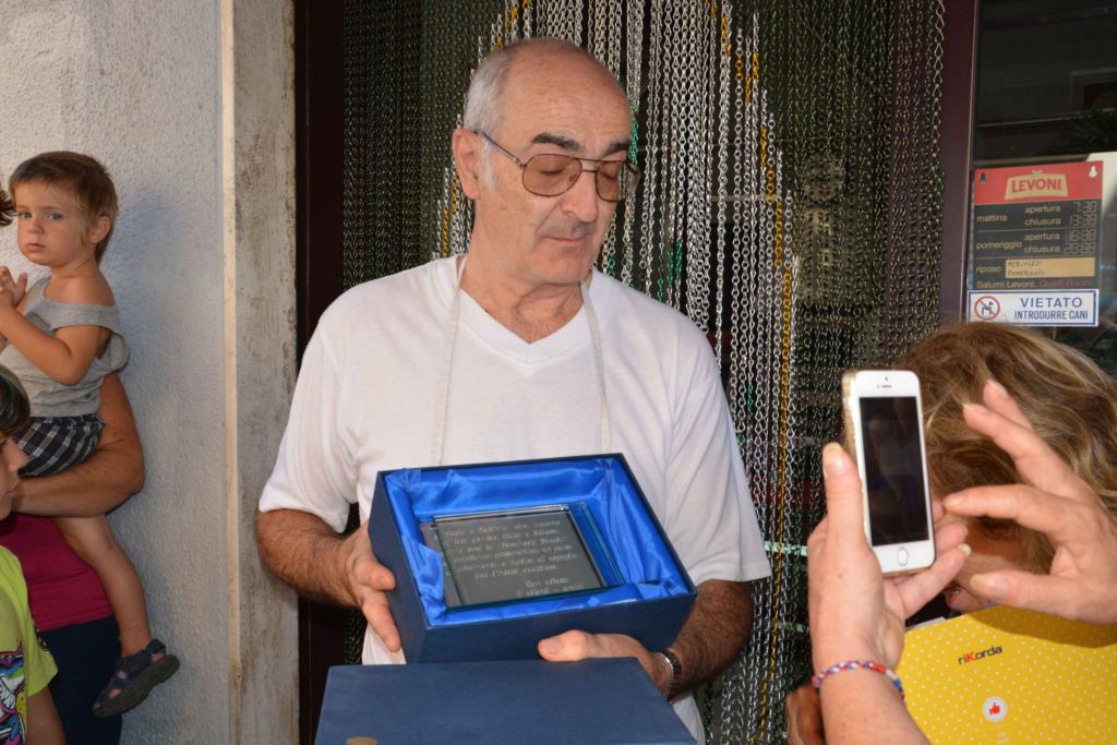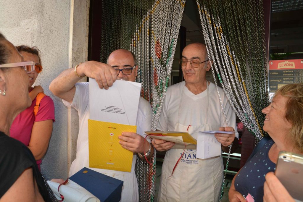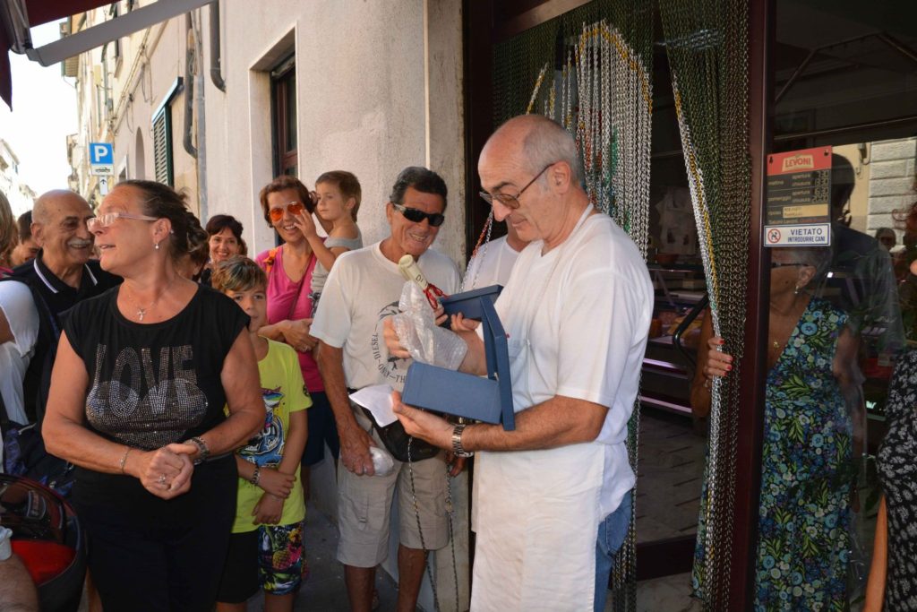 Durante il mese di luglio hanno attivato una raccolta per acquistare una targa e stampare, grazie alla collaborazione di una delle figlie, un libro fotografico. Alle ore 11.30 un piccolo e simbolico corteo da piazza Mazzini, angolo via delle Navi, si è recato alla Norcineria Bucchi per testimoniare affetto e stima ai due fratelli Polica e consegnare loro i regali.