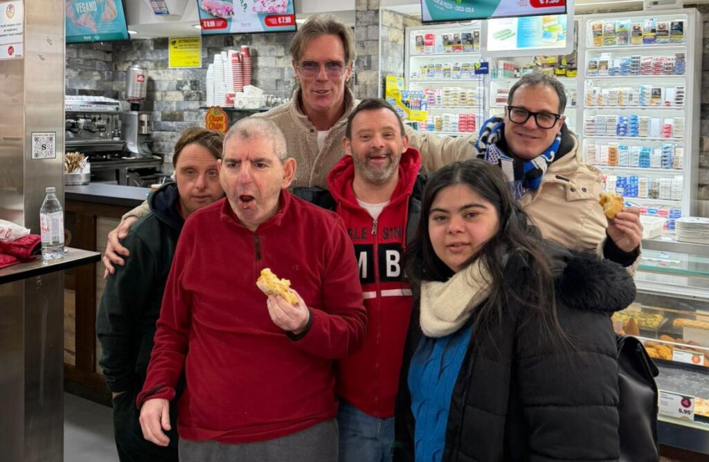 Una sosta in autogrill si è trasformata, due giorni fa, in una graditissima sorpresa per i Mayor von Frinzius diretti a Brescia per lo spettacolo Up&Down. La leggenda del ciclismo mondiale Mario Cipollini ha riconosciuto Paolo Ruffini e gli attori della compagnia – Federico Parlanti, Erika Bonura, Marco Visconti, Andrea Lo Schiavo e Massimiliano Silvestri – e si è fermato a chiacchierare con loro fra sorrisi, battute e grande affetto reciproco. Entusiasta, ha poi voluto realizzare un video sull’inaspettato incontro: “Adoro questi ragazzi, li trovo fantastici. E’ stato troppo ganzo incontrarli, non abbiamo risparmiato battute e dé…”. Per poi lanciare un invito ai bresciani: “Andate a vederli, sarà un tuffo meraviglioso nelle più intense e profonde emozioni della vita”. “Mi hanno detto che è stato gentilissimo, squisito – commenta Lamberto Giannini – Peccato non fossi presente, sono un grande appassionato di ciclismo. Quando il grande Cipollini ha chiesto una foto al Parlanti i ragazzi sono subito andati a vedere su internet chi era quella persona scoprendone meravigliati l’identità. Colgo l’occasione per ringraziarlo pubblicamente: il suo endorsement ci lusinga”. Il video su Facebook ha ottenuto in poche ore 14.400 like e 423.000 visualizzazioni.