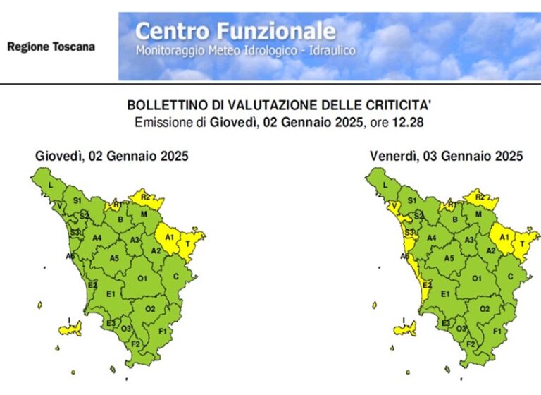 Il codice giallo sarà in vigore fino alle ore 14 di venerdì 3 gennaio. Venti di libeccio in intensificazione, con possibilità di raffiche fino a 70-80 km/h, e fino a 70-90 km/h su Gorgona