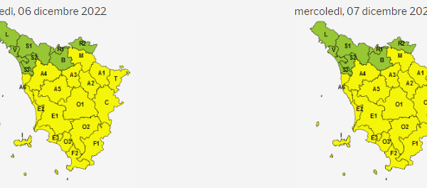 E’ prorogata fino alle ore 12 di mercoledì 7 dicembre la criticità gialla per temporali forti e rischio idrogeologico idraulico del reticolo minore.