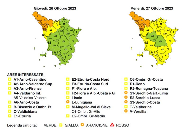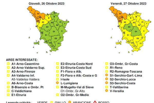 Il Centro funzionale meteo della Protezione civile regionale ha aggiornato il quadro delle situazioni di criticità. Per quanto riguarda Livorno e Gorgona è stato disposto il codice giallo per rischio idrogeologico e idraulico del reticolo minore in vigore fino alle 14 di venerdì 27 ottobre per la possibilità di precipitazioni persistenti, anche a carattere temporalesco. Sempre per Livorno e Gorgona codice giallo anche per vento e mareggiate in vigore fino alla mezzanotte (ore 23.59) di venerdì 27 ottobre. Mare molto mosso tendente ad agitato, venti forti di libeccio in intensificazione. L’Amministrazione comunale raccomanda alla cittadinanza di seguire i consigli della Protezione civile, tra i quali quello rivolto soprattutto a pedoni e guidatori di mezzi a due ruote di evitare per quanto possibile il transito lungo i viali a mare. Come comportarsi in caso di forte vento Fare attenzione all’aperto, in particolare in presenza di alberi e strutture temporanee o pericolanti e nei centri urbani; guidare con attenzione, in particolare sui tratti esposti alla caduta di piante e sassi; spostare o mettere in sicurezza oggetti sensibili agli effetti del vento prima dell’inizio del periodo di allerta; limitare le attività all’aperto e gli spostamenti; fare molta attenzione in città a possibili cadute di oggetti dall’alto (tegole, cornicioni, vasi, ecc.); non sostare in auto o a piedi in prossimità di piante e coperture, e prediligere gli spazi aperti. locali posti sotto il livello stradale, come cantine e box sotterranei. Come comportarsi in caso di forti mareggiate evitare, se possibile, di transitare nei tratti stradali a ridosso della costa; in caso di spostamento tramite traghetti, informarsi su possibili cancellazioni/riduzioni dei servizi; evitare le attività sportive e nautiche da diporto in mare, evitare ogni trasferimento via mare; balneazione vietata; mantenersi a debita distanza da scogli o moli che possano essere raggiunti da onde anomale.