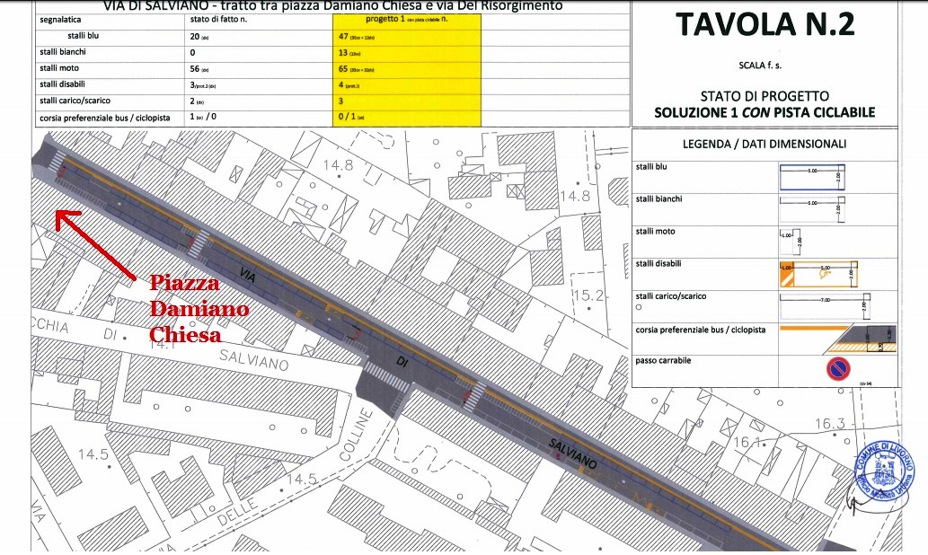 Via la corsia preferenziale per gli autobus, in arrivo una pista ciclabile che da piazza Damiano Chiesa si ricongiungerà a quella di via Lorenzini, più stalli blu, più posti moto e in arrivo anche 13 stalli bianchi per i residenti. Ecco il nuovo progetto che rivoluzionerà i primi duecento metri di via di Salviano e di conseguenza il cuore del quartiere Colline.