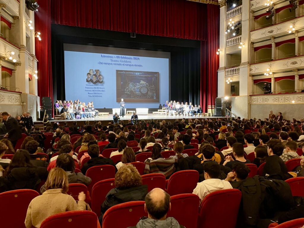 “Dal sangue versato al sangue donato” è il nome dell’iniziativa organizzata dalla Questura di Livorno con il patrocinio del Comune di Livorno e con la collaborazione dell’Ufficio scolastico Provinciale e dell’Associazione DonatoriNati della Polizia di Stato che ha visto Tina Montinaro, vedova di Antonio Montinaro, capo scorta del giudice Giovanni Falcone, dialogare con gli studenti delle scuole superiori. “Grazie ai ragazzi per la partecipazione – dice Montinaro – perché sono loro che devono volere il cambiamento. Rivivere quei momenti è difficile per me, ma ne sono anche molto orgogliosa. Dovete avere coraggio, non essere indifferenti, dovete fare una scelta, decidere da che parte stare. Vi auguro di avere coraggio e di camminare sempre a testa alta, perché nella vita non esiste niente di più bello”. Presenti, tra gli altri, Claudio Saltari, presidente di DonatoriNati, il questore Giuseppina Maria Rita Stellino, il prefetto Paolo D’Attilio, il responsabile dell’ufficio scolastico provinciale Andrea Simonetti e il sindaco Luca Salvetti. Questi gli istituti che hanno perso parte alla manifestazione: Niccolini Palli, Buonatalenti Cappellini Orlando, Enriques, Santo Spirito, Vespucci Colombo, Galileo Galilei, Mazzini, Benci/Borsi, Cerboni da Portoferraio, Carducci/Volta/Pacinotti da Piombino. Esposta all’esterno del teatro la Quarto Savona 15, ovvero la teca con i resti dell’auto della scorta del giudice Giovanni Falcone che nel maggio del 1992 venne fatta esplodere per mano della mafia a bordo della quale viaggiavano, oltre al giudice e alla moglie Morvillo, gli agenti della scorta Rocco Dicillo, Vito Schifani e Antonio Montinaro.
