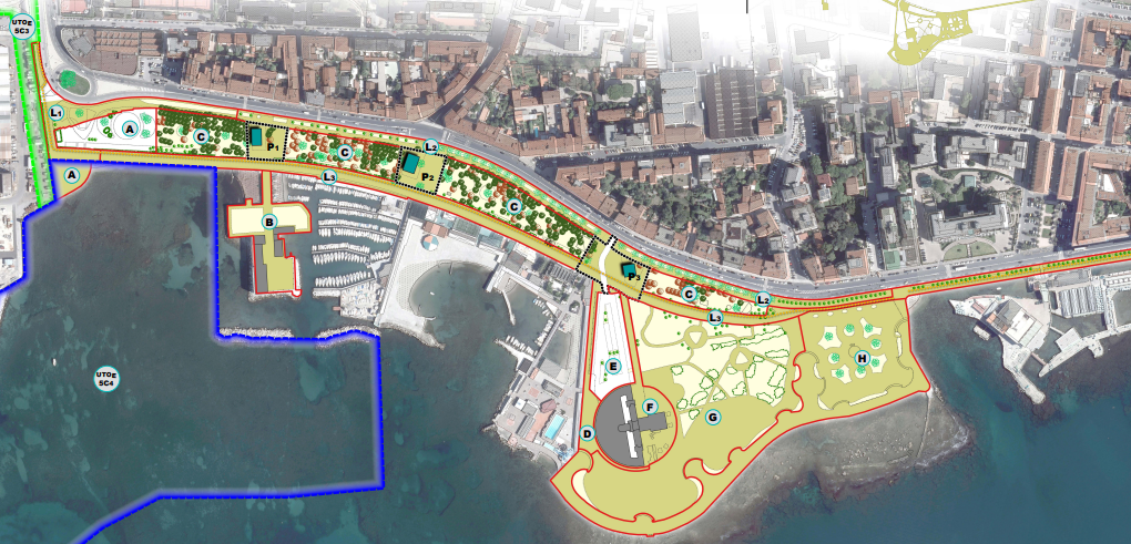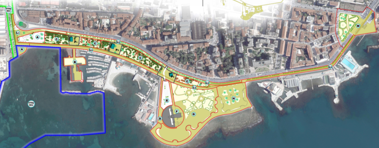 Nel corso della inaugurazione della nuova piazzetta davanti allo Scoglio della Regina (capitolo dedicato qui sotto) è stato presentato il “lungomare del futuro”, o meglio il masterplan di come cambierà il viale Italia dalla Bellana a S. Jacopo in Acquaviva. Andiamo nel dettaglio. Il tratto è stato suddiviso dal Comune in lettere. Lettera A (Largo Bellavista, tra il parcheggio della Bellana e la nuova piazzetta per capirsi) e Lettera C (Giardino del Parco Lineare, subito accanto per capirsi) possiamo metterle insieme. L’area della lettera A, si legge nella descrizione di accompagnamento, sarà interessata dagli interventi pubblici che raccorderanno i percorsi pedonali e ciclabili esistenti con quelli attualmente in fase di realizzazione nel controviale, rendendo più agevole l’accessibilità al parco pubblico lineare che, in “testata”, si immagina come un’area a verde riqualificata e attrezzata per le attività ludiche e la pratica sportiva libera di cui, il lungomare cittadino, costituisce scenario abituale e spontaneo. Nell’area contrassegnata come Lettera C si prevede una riqualificazione del patrimonio arboreo e degli arredi per una maggiore godibilità e fruizione del giardino. Proseguendo verso sud, Lettera B (Scoglio della Regina): all’interno dell’edificio dei Bagnetti Caldi si prevede di realizzare il Centro Visite Area Marina Protetta Secche della Meloria. Il masterplan affronta poi (Lettere D E e F) l’accesso pedonale alla Terrazza Mascagni che ad oggi, si legge, è un corridoio pedonale largo 5 metri e mezzo per 180 in terra battuta e quindi non particolarmente decoroso e per il quale si prevede la necessità di procedere ad una sistemazione architettonica dell’accesso pedonale che generi maggiore qualità e riconoscibilità dello spazio urbano in analogia con l’accesso pedonale all’Acquario. Le Lettere G e H prendono in esame il verde della Terrazza dove, si legge ancora nel masterplan, si immagina di dover intervenire alla qualificazione ambientale e paesaggistica delle porzioni della Terrazza che appaiono disarticolate e inconcluse. L1 L2 L3 e L4 sono le lettere che affrontano la continuità dei percorsi ciclabili e pedonali già esistenti con quelli che dovranno essere realizzati. Infine la Lettera M (piazza Passante S. Jacopo in Acquaviva). Qui si prevede la realizzazione di un continuum tra i due ambiti distinti della piazza, attraversati dall’arteria stradale. Insomma, il lungomare sta cambiando e cambierà ancora.