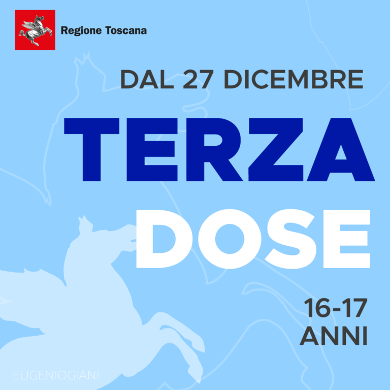 Dalle 18 di lunedì 27 dicembre è possibile prenotare sul portale della Regione (https://prenotavaccino.sanita.toscana.it/) la terza dose