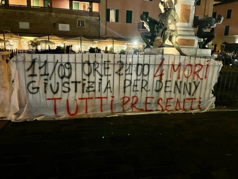 Dopo il ritrovo, alle 21 davanti ai 4 Mori, il corteo ha attraversato via Grande fino a piazza della Repubblica per poi proseguire verso via Bruno. In piazza della Repubblica la fiaccolata si è interrotta per qualche minuto. Il tempo di urlare al cielo nero la forte e decisa la parola “Giustizia!”. “Non morirai mai per chi ti tiene nel cuore”, hanno ribadito parenti e amici. Per le strade di Livorno è sfilato il corteo con gli striscioni “Mai più un altro Denny” e “Poteva essere tuo figlio”.