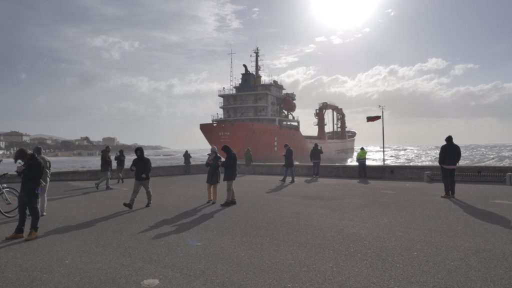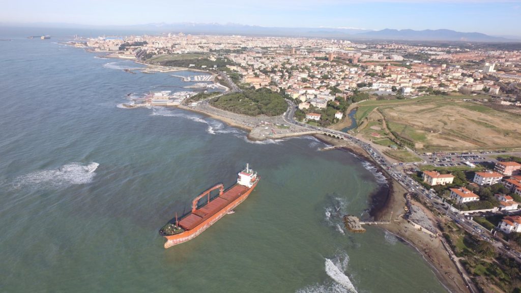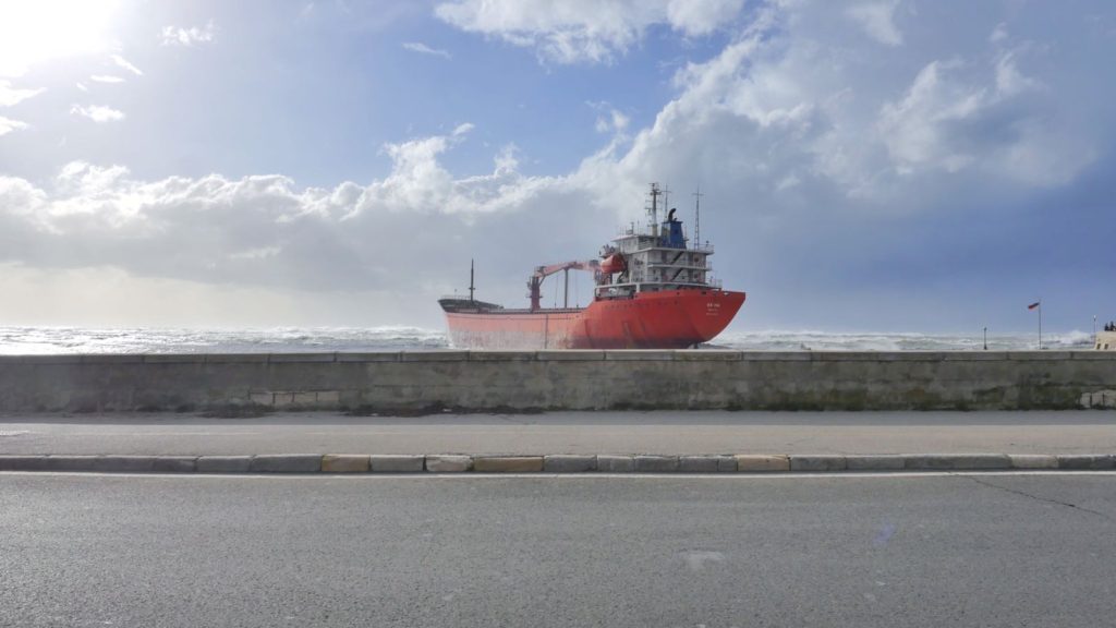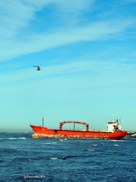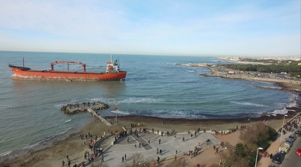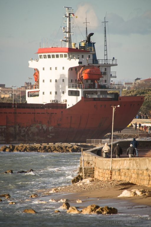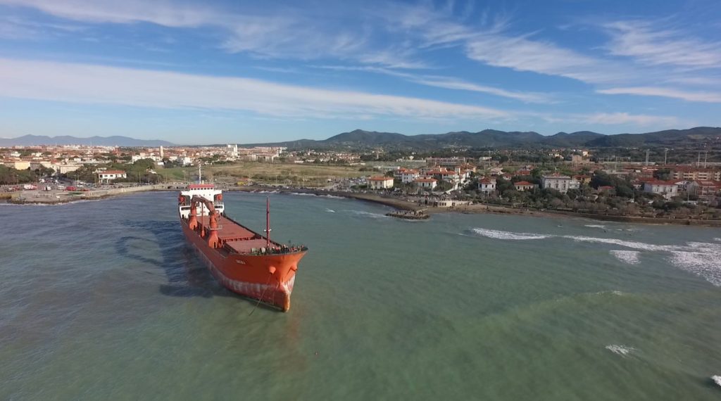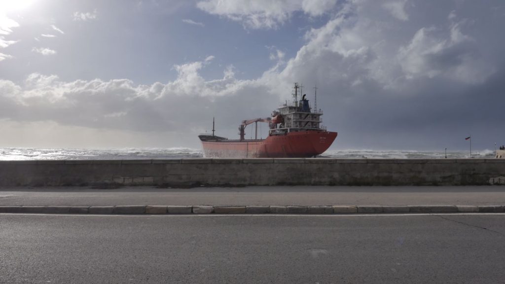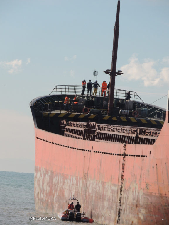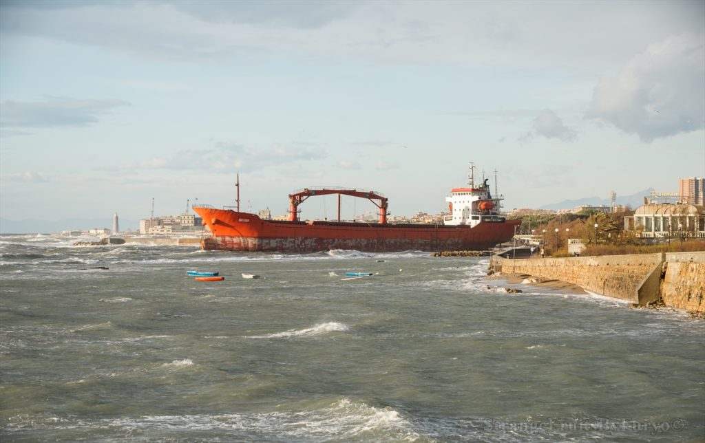 E’ stato disincagliato tra domenica 15 e lunedì 16 gennaio, intorno a mezzanotte, il mercantile Sigma – battente bandiera liberiana, con 18 persone di equipaggio a bordo, 6500 tonnellate di stazza circa, 128 metri di lunghezza, era vuoto quando si è verificato l’incidente ma solitamente trasporta grano – che da venerdì 13 gennaio era arenato davanti alla Rotonda/Tre Ponti a seguito di una forte mareggiata (tutte le foto e i video in fondo all’articolo, clicca qui per leggere l’articolo). Le operazioni, coordinate dalla capitaneria, sono entrate nel vivo intorno alle 23 del 15 gennaio dopo circa due giorni e mezzo di tentativi e comunque prima dell’arrivo di una nuova allerta meteo fino alle 12 di mercoledì 18 (clicca qui). Da quel momento ci sono voluti circa sessanta minuti per vedere la nave, trainata con un cavo d’acciaio dai rimorchiatori Neri, prendere di nuovo il largo e dirigersi verso l’imbocco del porto dove alle ore 3,45 ha ormeggiato in sicurezza (foto Lanari). Sempre nel pomeriggio di domenica 15 sono andati in scena anche alcuni prelievi di campioni d’acqua per la verifica di eventuali sostanze inquinanti. Il test è stato effettuato dal personale del comando generale di Roma della guardia costiera che ha inviato sul posto tre ufficiali biologi con un laboratorio ambientale mobile. Intorno alle 19.45 i risultati (negativi) delle analisi: non sono dunque riscontrate tracce di idrocarburi in mare.