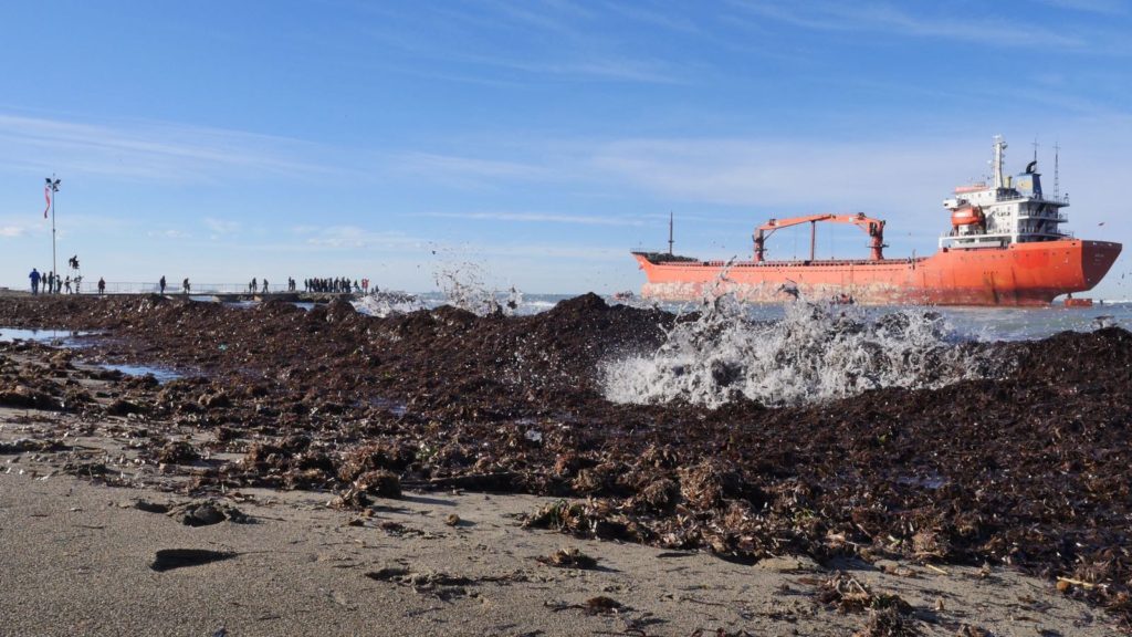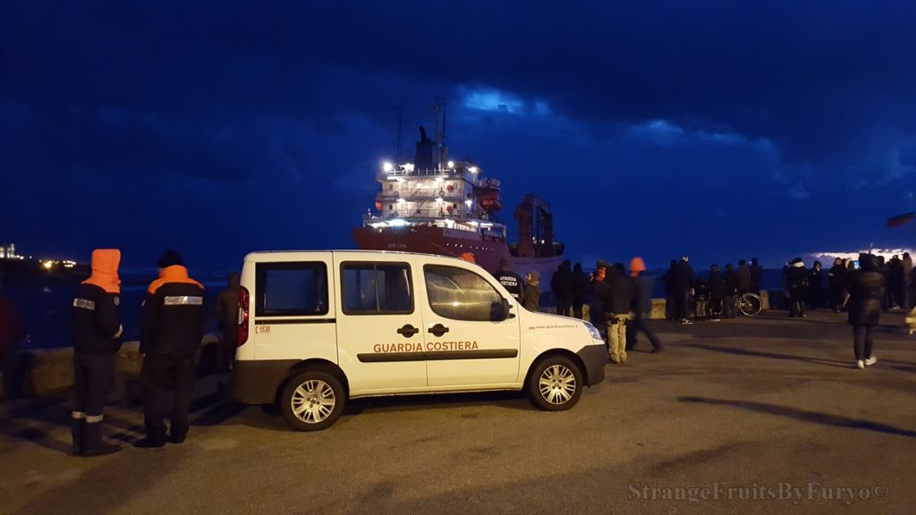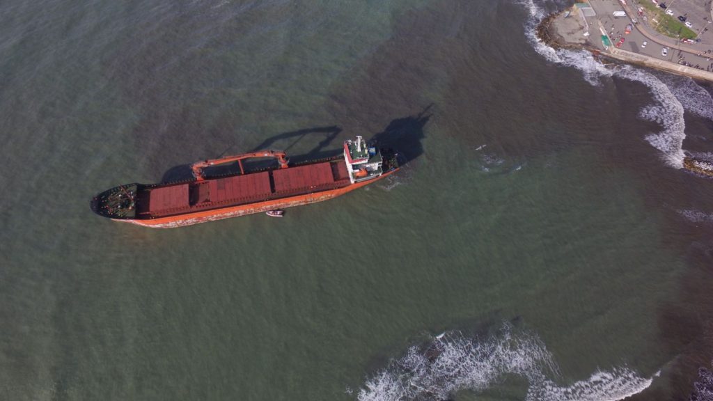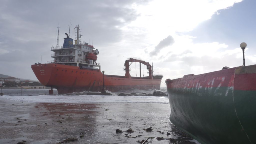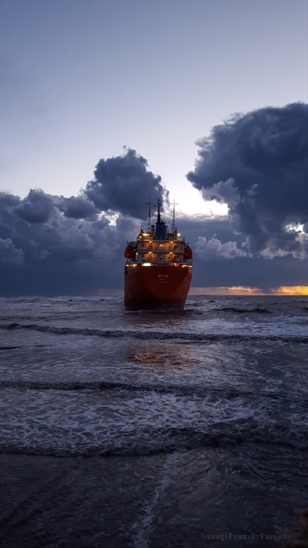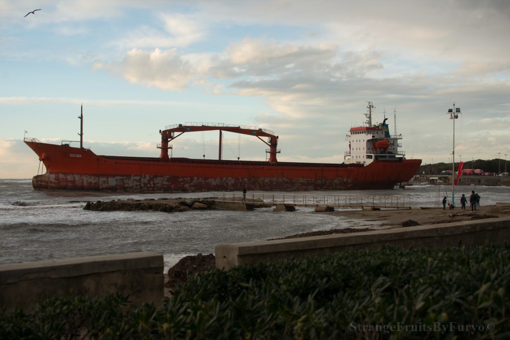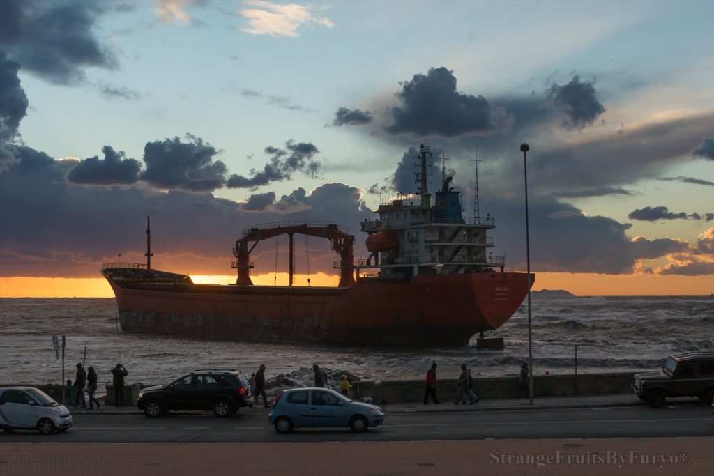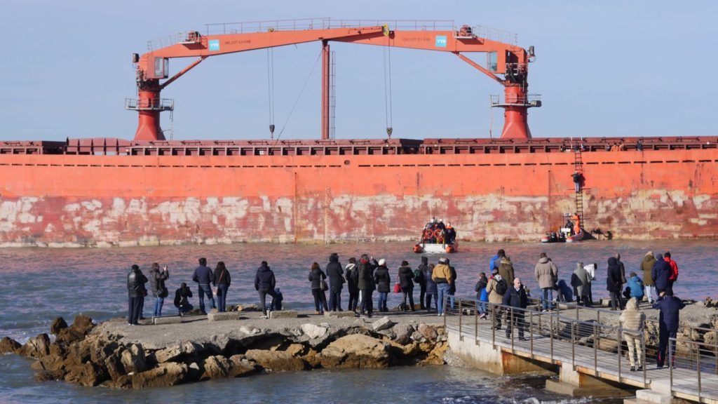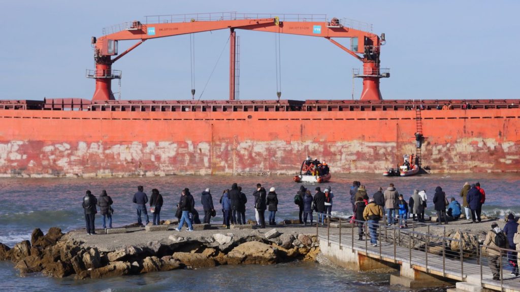 E’ stato disincagliato tra domenica 15 e lunedì 16 gennaio, intorno a mezzanotte, il mercantile Sigma – battente bandiera liberiana, con 18 persone di equipaggio a bordo, 6500 tonnellate di stazza circa, 128 metri di lunghezza, era vuoto quando si è verificato l’incidente ma solitamente trasporta grano – che da venerdì 13 gennaio era arenato davanti alla Rotonda/Tre Ponti a seguito di una forte mareggiata (tutte le foto e i video in fondo all’articolo, clicca qui per leggere l’articolo). Le operazioni, coordinate dalla capitaneria, sono entrate nel vivo intorno alle 23 del 15 gennaio dopo circa due giorni e mezzo di tentativi e comunque prima dell’arrivo di una nuova allerta meteo fino alle 12 di mercoledì 18 (clicca qui). Da quel momento ci sono voluti circa sessanta minuti per vedere la nave, trainata con un cavo d’acciaio dai rimorchiatori Neri, prendere di nuovo il largo e dirigersi verso l’imbocco del porto dove alle ore 3,45 ha ormeggiato in sicurezza (foto Lanari). Sempre nel pomeriggio di domenica 15 sono andati in scena anche alcuni prelievi di campioni d’acqua per la verifica di eventuali sostanze inquinanti. Il test è stato effettuato dal personale del comando generale di Roma della guardia costiera che ha inviato sul posto tre ufficiali biologi con un laboratorio ambientale mobile. Intorno alle 19.45 i risultati (negativi) delle analisi: non sono dunque riscontrate tracce di idrocarburi in mare.
