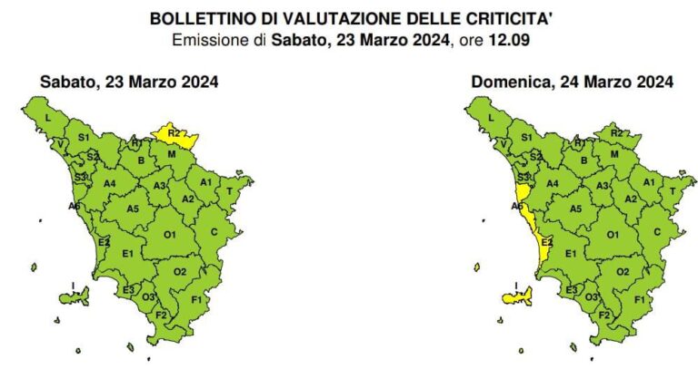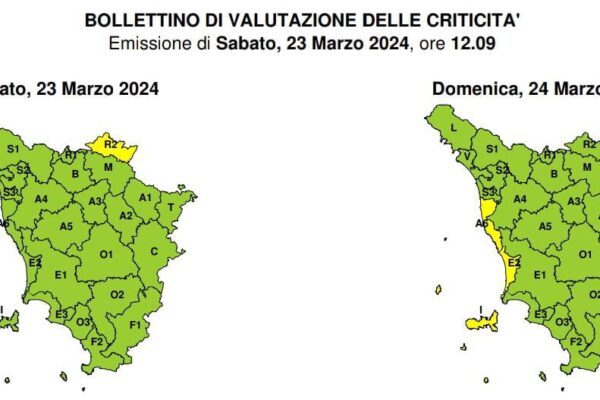 Il Centro funzionale meteo della Protezione civile regionale ha emanato un avviso in codice giallo per rischio vento e mareggiate riguardante le zone costiere livornesi e pisane e le isole dell’Arcipelago. Il codice giallo sarà in vigore dalla mezzanotte (ore 23.59) di oggi, sabato 23 marzo, alle ore 18 di domani, domenica 24 marzo. Venti di ponente e libeccio con raffiche fino a 70-90 km/h nella giornata di domenica, mari molto mossi localmente agitati. L’Amministrazione comunale raccomanda alla cittadinanza di seguire i consigli della Protezione civile, tra i quali quello rivolto soprattutto a pedoni e guidatori di mezzi a due ruote di evitare per quanto possibile il transito lungo i viali a mare.
