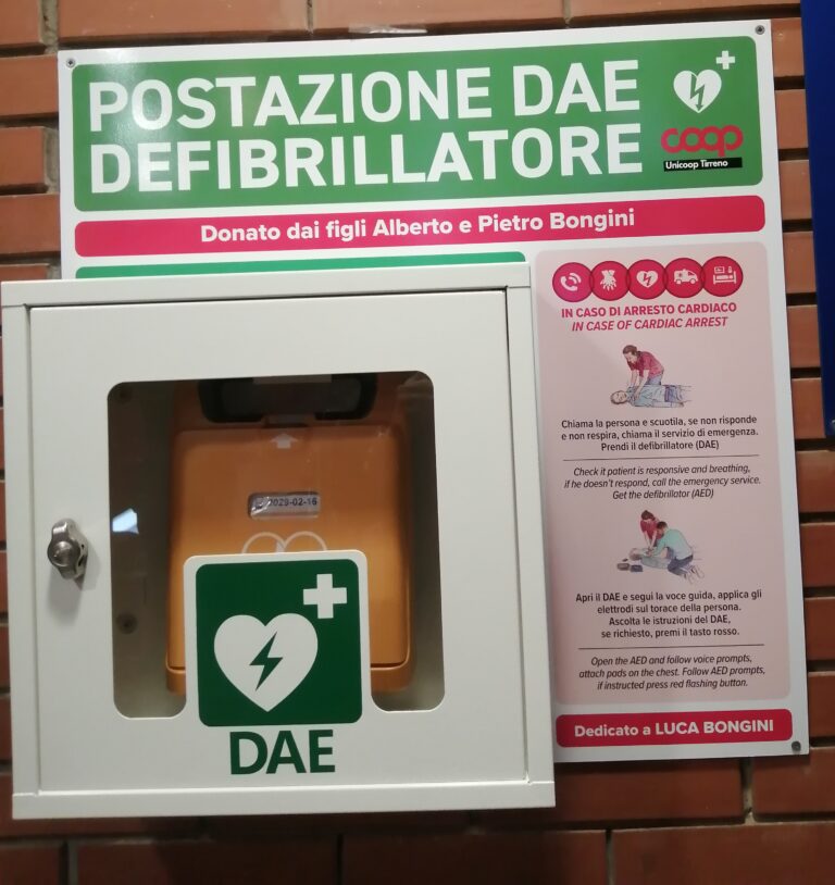 Il defibrillatore e la targa sono stati posizionati nella sede di Unicoop Tirreno a Vignale Riotorto durante una cerimonia a cui hanno partecipato i dipendenti della Cooperativa, la presidente Simonetta Radi e il vice presidente Massimo Favilli