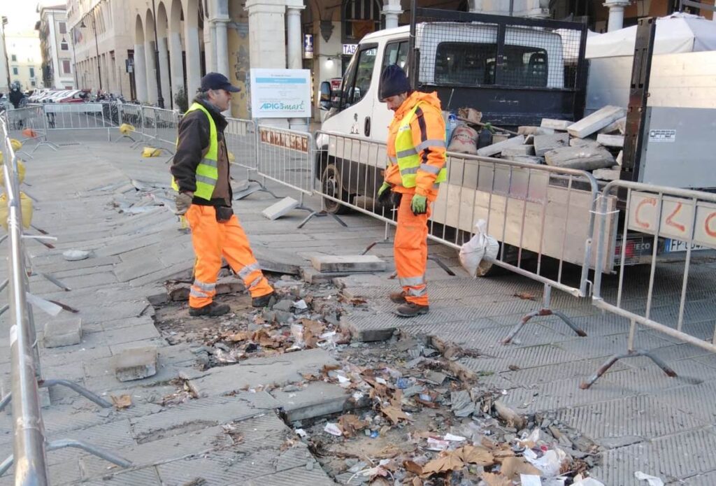 Sono iniziati i lavori di rimozione delle pietre danneggiate in piazza Grande, saltate sei mesi fa per un problema legato alla pavimentazione (rinnovata nel 2014) suscettibile alla variazione termica.