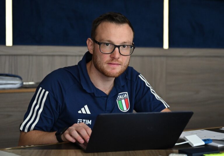 Di lui ve ne abbiamo già parlato in estate quando gli abbiamo dedicato un articolo come match analyst della nazionale italiana under 20. Oggi vale la pena dedicargli un nuovo articolo in quanto match analyst della nazionale A. Parliamo di Marco Mannucci, classe 1988, livornese, che membro dello staff di Spalletti, lunedì 19 novembre a Leverkusen lo abbiamo visto in tv a festeggiare in campo con il mister e la squadra la qualificazione all’europeo. Una carriera da match analyst quella di Marco, come si apprende dal sito della Figc, iniziata con il tecnico Cristiano Lucarelli prima alla Pistoiese (2014/15) e poi al Tuttocuoio (2015/16). Entrato nel 2016 nel Club Italia con il ruolo di match analyst nelle Nazionali Giovanili e nella Nazionale A Femminile, nel maggio 2023 era nello staff della Nazionale Under 20 finalista nel Mondiale di categoria e dal 1 settembre 2023 è il match analyst della Nazionale A.