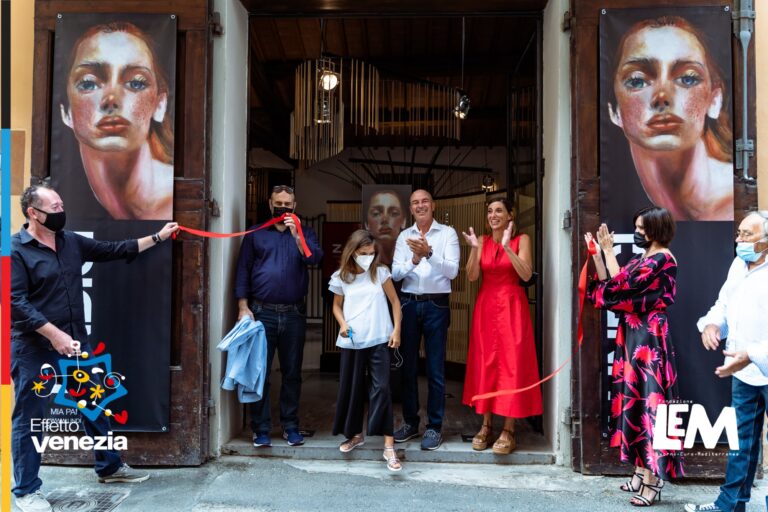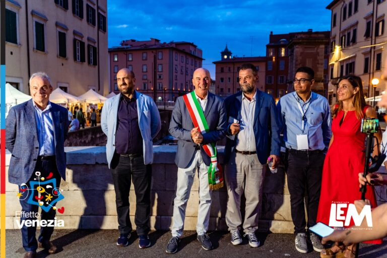 Bella ed emozionante l’inaugurazione della mostra di pittura Undici della giovanissima Mia Pampaloni che ha pennellato così l’avvio della rassegna. Il sindaco ha poi dato il via ufficiale con alcuni rappresentanti della giunta, con il presidente della Fondazione Livorno, Luciano Barsotti e con la direttrice artistica, Francesca Ricci, sul Ponte di Marmo in via Borra. “Ho scelto questa location per aprire questa edizione di Effetto Venezia perché è un’edizione che invita all’abbraccio – ha detto il sindaco Luca Salvetti – anche il titolo A braccia aperte richiama questo aspetto che è quello che forse ci manca di più in questa fase dopo 16 mesi di pandemia. E ricordandolo a Effetto Venezia ricordiamo anche la voglia che c’è in tutti noi di fare qualcosa di bello insieme agli altri e quindi torniamo in questo quartiere che è spettacolare. Un Effetto Venezia ancora una volta allargato perché dobbiamo impedire che ci siano assembramenti perché vogliamo seguire in maniera puntuale l’aspetto della sicurezza anche sotto l’aspetto della pandemia che non molla la presa e per cui bisogna sempre prestare massima attenzione”.