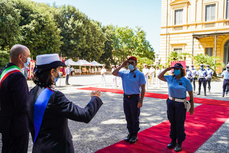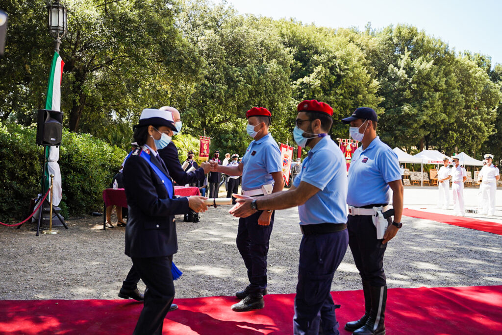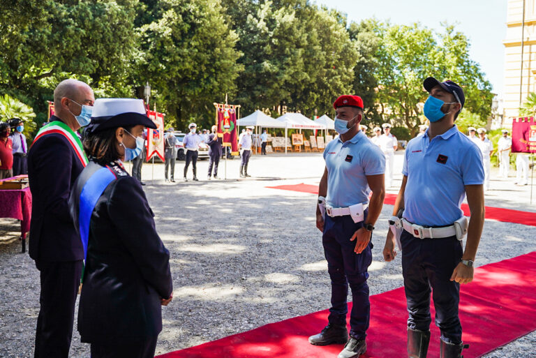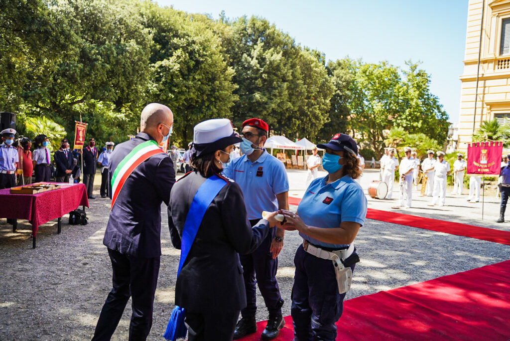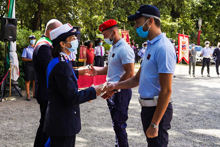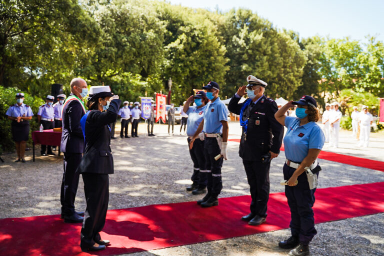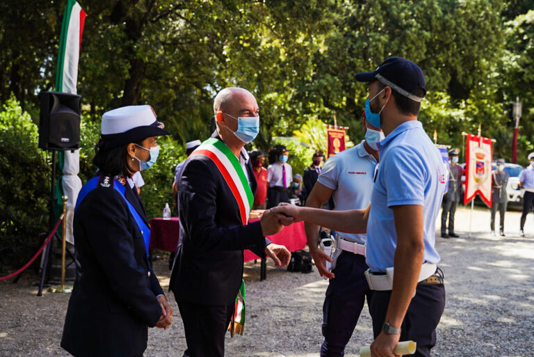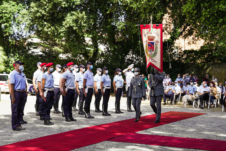 La polizia municipale il 1° luglio ha festeggiato nella cornice di Villa Mimbelli il suo 276º anno di vita (foto Lorenzo Amore Bianco. Clicca sul link in fondo all’articolo per consultare i DATI di un anno di servizio e per leggere gli encomi elargiti).
