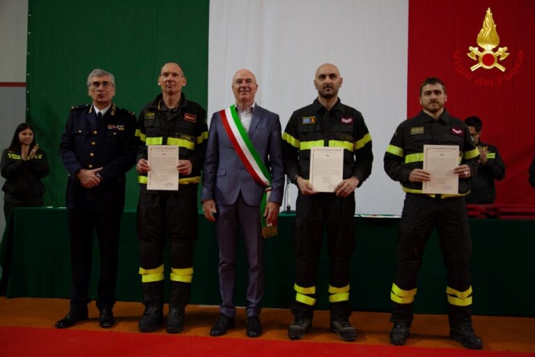 Elogio speciale ai vigili del fuoco Federico Leoni, Luca Lavagi, Luca Gaetano Torluccio, Federico Poggiani e Luca Menghi per il coraggioso intervento compiuto il 1 novembre 2025 a Calignaia (il riconoscimento è stato conferito stamattina) dove una donna, con l’intento di lanciarsi nel vuoto dal ponte, si era trovata a 50 metri d’altezza oltre le barriere di protezione. Questo elogio celebra il coraggio, la dedizione e la prontezza dei vigili del fuoco sempre pronti a proteggere i cittadini e affrontare il pericolo con determinazione