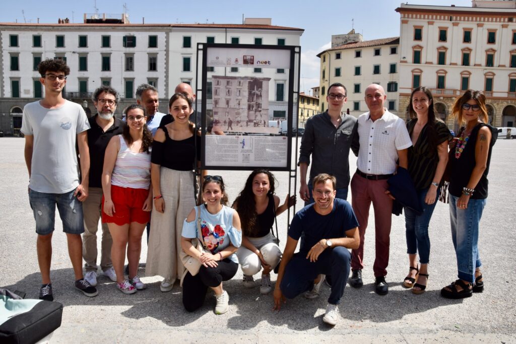 Raccontare la città attraverso dei pannelli fotografici tridimensionali. E’ questo l’obiettivo dei ragazzi e delle ragazze di “Finestre sul passato”, uno dei tre percorsi nati da NEET, progetto finanziato da ANCI, che ha messo insieme le città di Genova e Livorno e che sul nostro territorio è stato coordinato dall’Ufficio Servizi Scolastici Integrati Rete Scolastica, CRED e CIAF. Alla presenza del sindaco Luca Salvetti e della vicesindaca Libera Camici è stato svelato il primo dei due pannelli realizzati che sovrappone ad uno dei palazzi di Piazza della Repubblica una foto storica che lo ritrae poco dopo i bombardamenti della Seconda Guerra Mondiale. Il sindaco ha rimarcato l’importanza del progetto “per presentare i mille volti interessanti di Livorno, non ultimi quello storico e artistico”. Nicola Benvenuti, ideatore del progetto: “Alla base di questo progetto c’è l’idea che la nostra città abbia un grande potenziale e che non sia stato sfruttato al massimo delle sue potenzialità. Il patrimonio e gli scorci più suggestivi della città possono interessare sia i cittadini per scoprire la loro stessa città, sia i turisti che, passando per la nostra città, spesso la abbandonano in breve tempo per recarsi in mete più famose come le varie città d’arte toscane. Riteniamo che Livorno abbia invece tutte le carte in regola per attrarre questi turisti e offrire loro un buon spunto per passare una bella giornata in città. Una serie di pannelli standard che tramite la sovrapposizione prospettica mostrano la Livorno che è stata grazie alle immagini di archivio e il contesto attuale. In questo modo è possibile ricostruire la storia e anche lo sviluppo urbanistico cercando di incuriosire”.