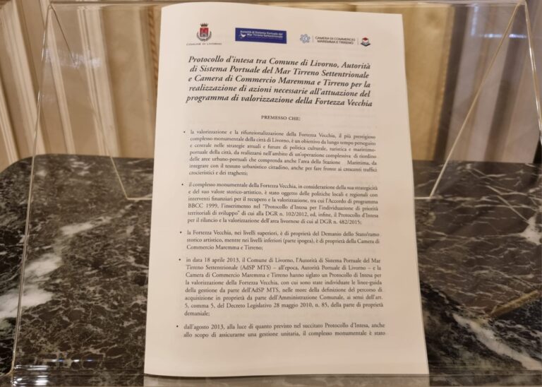 Fortezza Vecchia. Firmato accordo tra Comune, AdSP e Cciaa