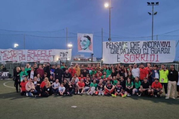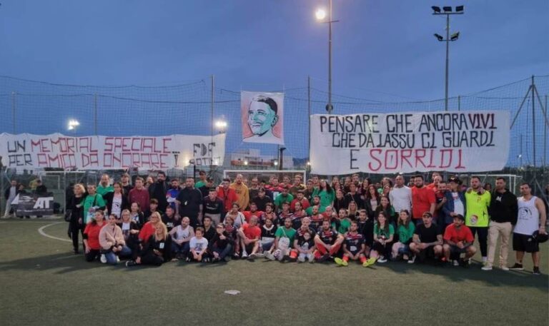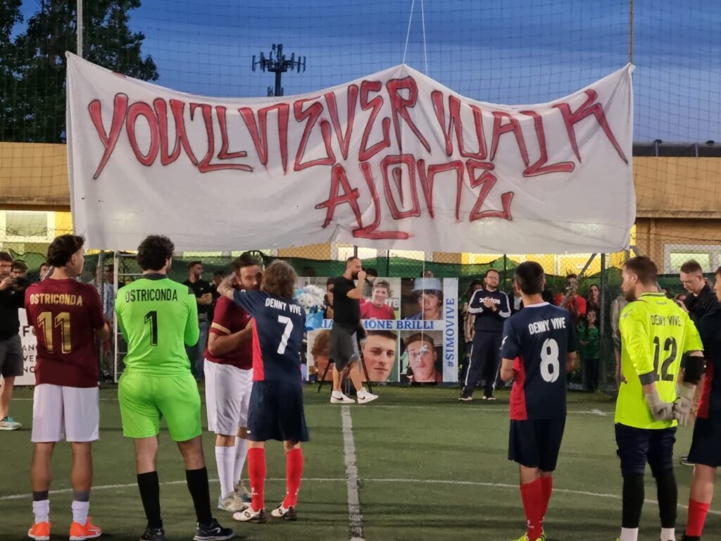 “Sono mesi che lavoriamo a questo torneo e devo dire che stasera sono particolarmente emozionato. La scomparsa di Denny ha toccato profondamente tutta la città. Questo applauso è per te che ci guardi da lassù”. Così Gabriele Baronetto del Nuovo Centro Coteto ha aperto il 1° Memorial Denny Magina parlando ai circa 500 presenti alla partita di esordio del torneo di calcetto in memoria del ventiduenne scomparso nell’agosto 2022 tra la squadra degli amici di Denny, Femmy United, e Ostriconda. Ad organizzare la serata, caratterizzata da una coreografia iniziale da stadio e da una raccolta fondi, sono stati tra gli altri Stefano Francalacci e Nicola Sighieri: “Abbiamo avuto l’adesione di 24 squadre, tante, e questo non ci può fare che piacere. Non ci aspettavamo tanto coinvolgimento. Evidentemente il torneo è sentito. Dobbiamo ancora decidere dove destinare il ricavato della serata ma sarà senz’altro a scopo benefico”. Nel campo circondato dagli striscioni (“Denny nei nostri cuori”, “Denny per sempre”, “Un memorial speciale per un amico da onorare”, “Pensare che ancora vivi, che da lassù ci guardi e sorridi”, “Questo è per te”, “You’ll never walk alone” e “This is for you guerriero”), dopo l’ingresso dei giocatori delle due formazioni, da sottolineare il bel gesto dell’Ostriconda che ha voluto porgere un omaggio floreale al padre di Denny. Poi un minuto di silenzio e quindi il via alla coreografia con la batteria dei fuochi di artificio, i fumogeni, gli applausi e i cori. Presente anche Erika, la mamma di Denny, che ringraziamo per la disponibilità: “Voglio ringraziare di cuore tutti gli amici che hanno ritagliato il proprio tempo sottraendolo alla famiglia e al lavoro per organizzare il Memorial, sono bimbi d’oro. Sono qui anche per continuare a chiedere giustizia”.