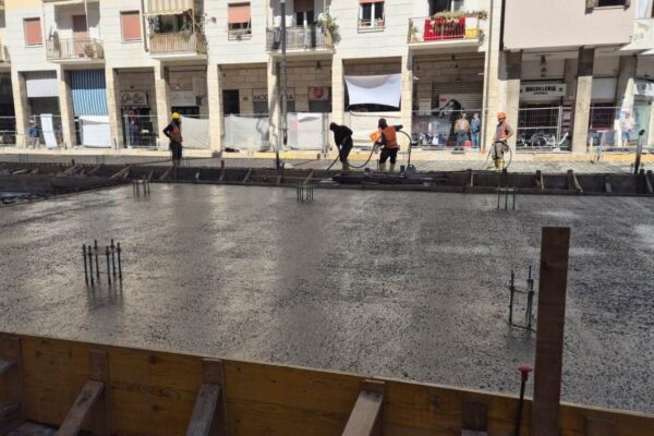 Prosegue la riqualificazione dell’area mercatale di via Buontalenti: completato il primo getto di fondazione con 160 metri cubi di calcestruzzo, mentre nelle prossime settimane sono previsti altri due interventi per arrivare alla struttura portante della nuova copertura