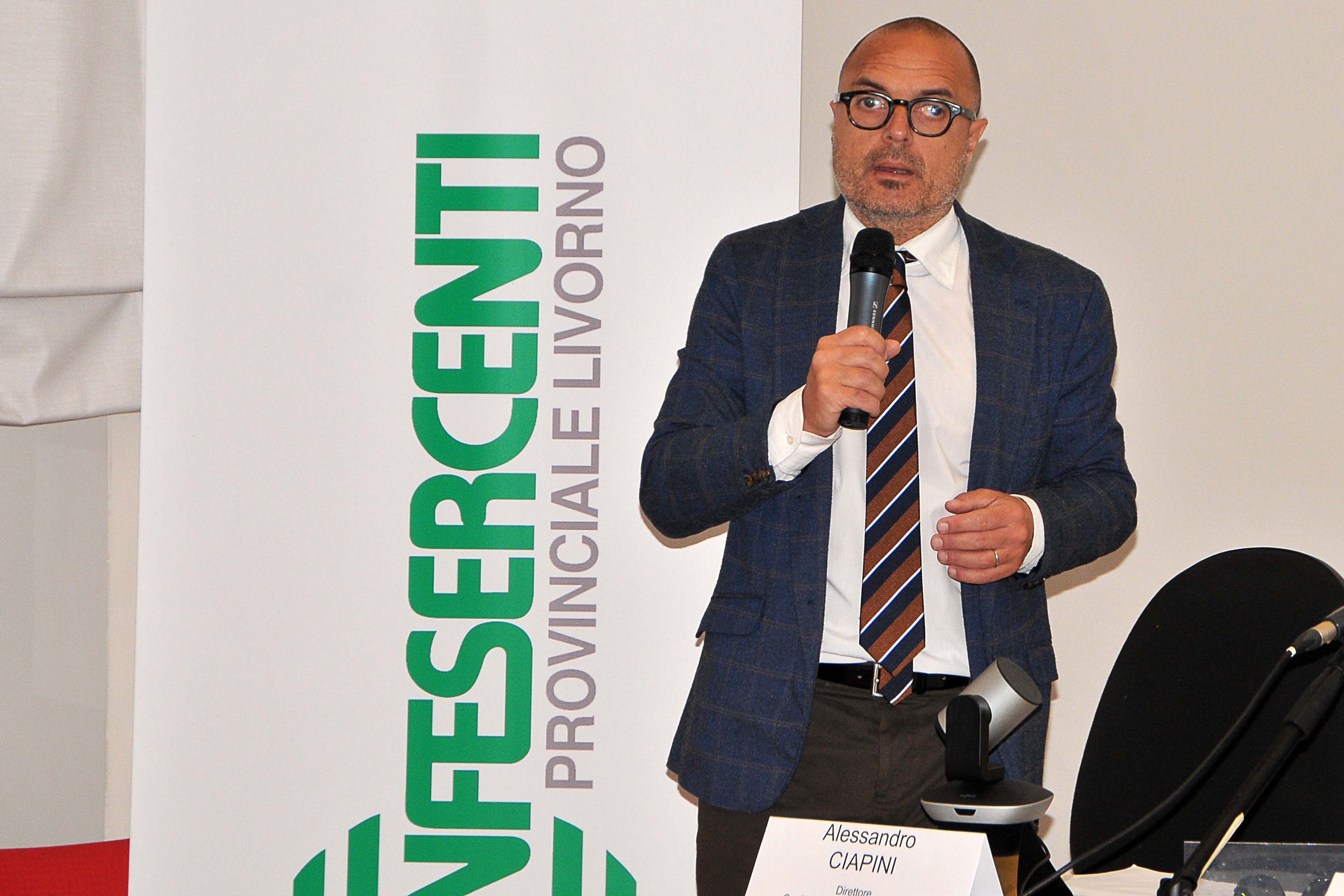 Alessandro Ciapini direttore Confesercenti Provinciale di Livorno. Foto Simone LanariPer il terzo anno consecutivo la Confesercenti Livorno, in collaborazione con Italia Comfidi e l’associazione Eraclito 2000, ha diretto una presentazione di diversi progetti degli studenti del Master in Comunicazione, Impresa, Banche e Assicurazioni (CIBI) della professore Diana Pardini, al fine di condividere la loro esperienza e far conoscere le loro idee. Gran cerimoniere dell’incontro, Alessandro Ciapini direttore della Confesercenti Provinciale di Livorno, dopo l’intervento iniziale dell’assessore al lavoro e alla ricerca di Livorno Francesca Martini, ha aperto le danze alle 9:30 presentando gli ospiti e dando loro la parola (e il microfono). Il professore Marco Giannini ha fatto da apripista, discutendo sulla combinazione giusta di competenze e capacità personali necessarie per entrare nell’universo delle organizzazioni aziendali, la professoressa di ingegneria gestionale Serena Gianfaldoni ha brillantemente illustrato l’importanza delle risorse umane e la loro valorizzazione coinvolgendo i ragazzi presenti in sala, l’economista Marcello Marzano si è invece fatto sostenitore delle start up come stile di pensiero e risoluzioni ai problemi quotidiani. Sono intervenute anche la stessa professoressa Pardini e la responsabile dell’associazione Cecilia Taddei che ha spiegato la velocità dell’innovazione imprenditoriale di questa “quarta rivoluzione industriale”, lasciando poi spazio alle tre presentazioni dei giovani “Archimede”. Eleonora Marchi e il suo team hanno presentato “Watch for safety”, uno speciale “orologio” da polso che anziché indicare l’ora segnala la presenza nelle vicinanze di stalker, con l’evidenziazione in verde delle zone “protette” direttamente visibili sul quadrante dello watch.