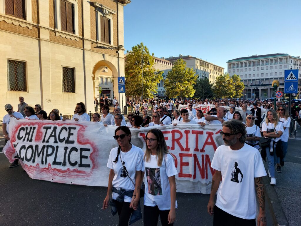 Chi ha il microfono in mano dirige il corteo. I familiari davanti, poi gli amici e chiunque volesse unirsi. Tra i tanti, oltre al sindaco, anche il consigliere regionale Francesco Gazzetti. Poi gli striscioni che si sono fatti largo nelle strade, tra i palazzi e le macchine parcheggiate, tra le finestre socchiuse che ogni tanto si aprivano dall’alto per vedere il serpentone che si snodava per la città.