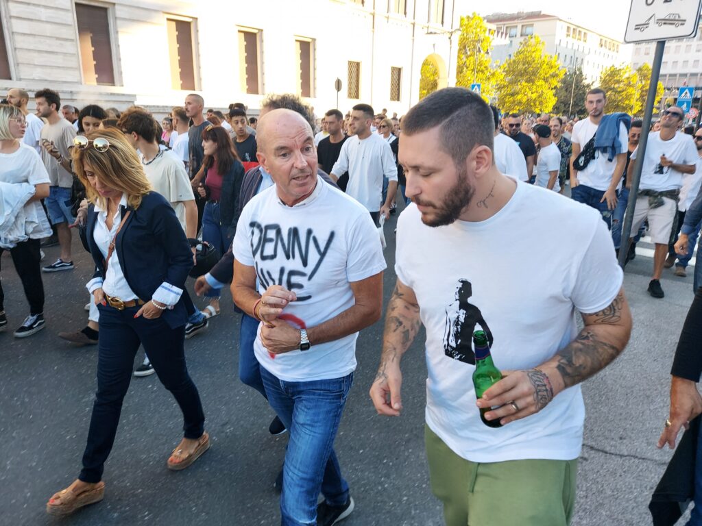 “Chi tace è complice – Verità per Denny”. Tantissime le maglie bianche con le scritte sopra: “Denny per sempre”, “Denny Vive”, “Giustizia per Denny”.