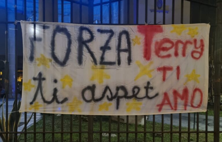 È apparso in serata uno striscione dedicato all’adolescente ricoverata in Rianimazione. “Forza Terry, ti aspettiamo”, un gioco di parole che trasmette affetto circondato da stelline gialle. A realizzarlo e appenderlo sulla cancellata dell’ospedale, lato via Gramsci, sono stati verosimilmente gli amici e tutti coloro che le vogliono bene desiderosi di farle sentire tutto il loro supporto in questo momento difficile. E “forza” è anche la parola più utilizzata in queste ore dai cittadini per esprimere vicinanza attraverso un commento sotto all’articolo.