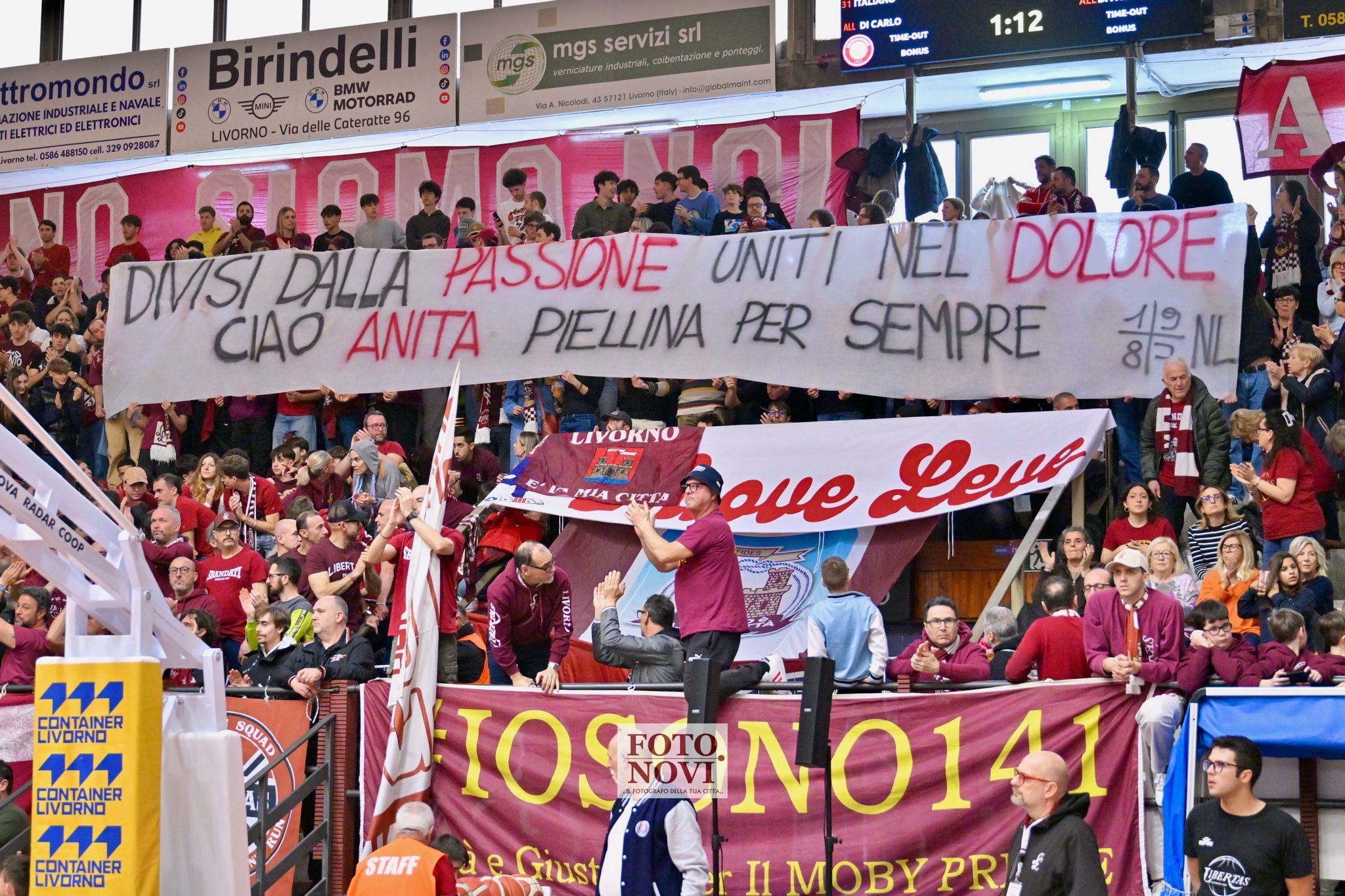 noi. Anita aveva una parola gentile verso tutti, era una persona onesta e buona e ci fa piacere che le sia stato riconosciuto”. Le Rebels Girls Pielle, che ringraziamo per la disponibilità, commentano così l’iniziativa degli Sbandati Libertas che hanno voluto dedicare lo striscione “Divisi dalla passione uniti nel dolore. Ciao Anita piellina per sempre” ad Anita, tifosa Pielle scomparsa, esponendolo domenica 23 marzo al PalaMacchia nel match contro Cento. Una iniziativa che ha riscosso tanto successo tra il popolo biancoazzurro che nel corso della giornata sui social ha pubblicato tantissimi commenti di ringraziamento per il gesto. Tra questi: “Chapeau. Livornesi prima di tutto”. “Questo è il vero sport”. “Grazie ragazzi avete vinto lo stesso, gesto bellissimo”. Nel corso del pomeriggio anche i Rebels Pielle Curva Sud si erano espressi pubblicando sulla pagina Fb degli Sbandati: “Grazie ragazzi per il ricordo della nostra Anita”.