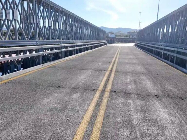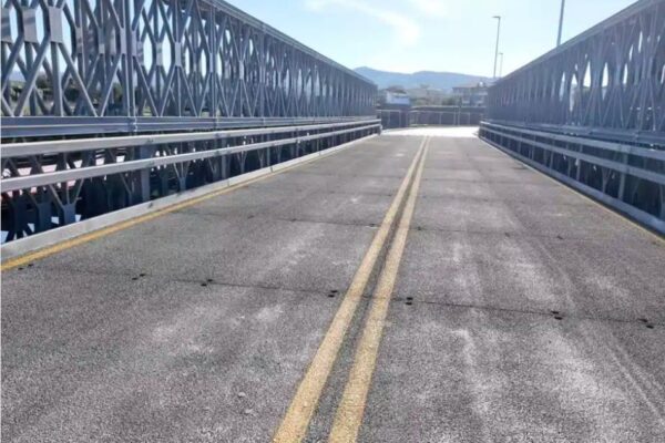 Nella foto il ponte Bailey che sta garantendo la viabilità provvisoria in attesa della nuova opera
