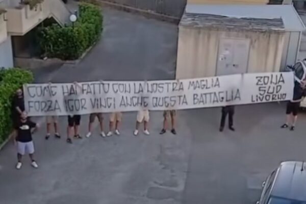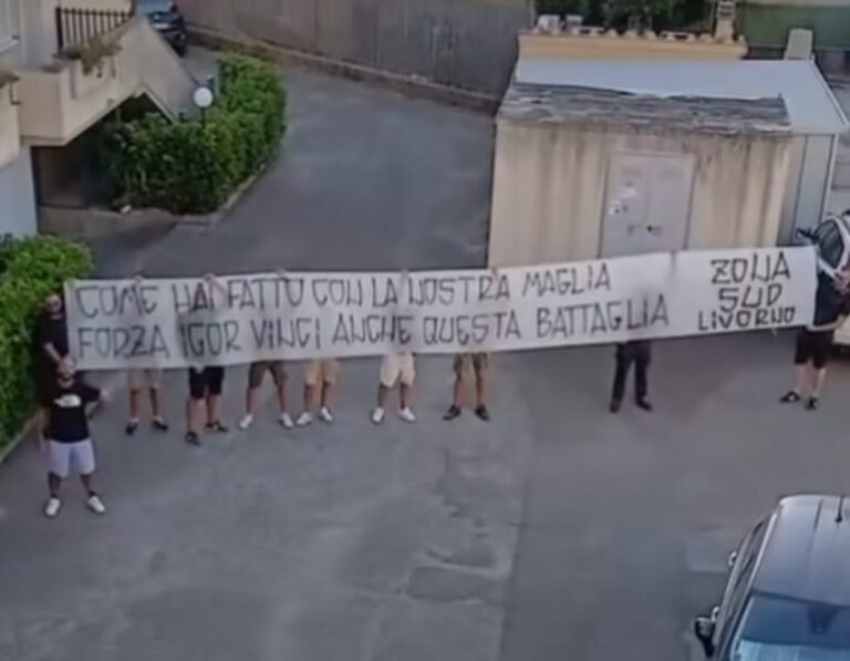 Una delegazione di Zona Sud Livorno ha mostrato al campione lo striscione "Come hai fatto con la nostra maglia. Forza Igor vinci anche questa battaglia"
