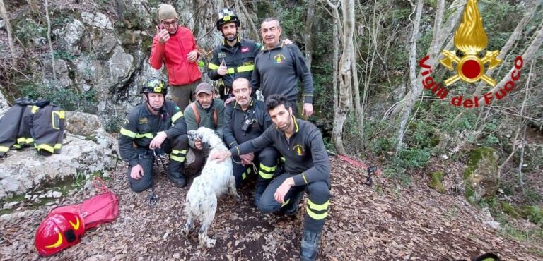 I vigili del fuoco hanno salvato un cane da caccia che era caduto in una voragine di circa 45 metri durante una battuta di caccia nelle vicinanze di Sassetta. Il tragitto assai impervio ha richiesto diverso tempo per giungere sul posto a piedi. Alla fine la squadra di Cecina e il personale SAF (speleo alpino fluviale) partito dalla sede di Livorno sono riusciti a recuperare il cane eseguendo la manovra Saf e a restituirlo al legittimo proprietario.