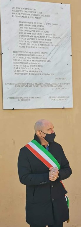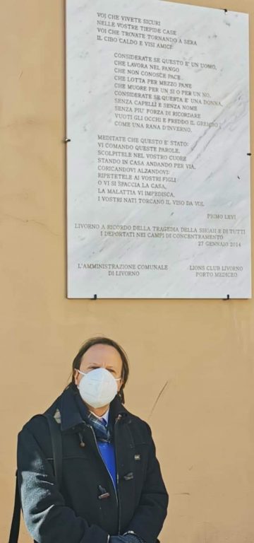 In occasione della Giornata della Memoria si è svolta la mattina di mercoledì 27 gennaio la ormai consueta breve cerimonia del Lions Club Livorno Porto Mediceo sotto la targa fatta affiggere sette anni fa sul muro di Palazzo Civico con la celeberrima poesia di Primo Levi “Se questo è un uomo”. E’ uno degli appuntamenti più sentititi dal club che ogni anno riunisce le autorità civili, militari e religiose della città per un momento di riflessione sulla pagina più buia della storia dell’umanità . Il presidente del Porto Mediceo Gianluigi De Paola ha sottolineato il forte rapporto fra il Porto Mediceo e la Comunità Ebraica che si inserisce nel solco della lunga tradizione civile labronica che affonda le sue radici nelle leggi livornine. La poesia di Levi incisa sulla targa è un simbolo fra i tanti simboli che adornano Palazzo Comunale, ha detto il sindaco Luca Salvetti sottolineando come la memoria della Shoah debba essere una guida continua per fronteggiare rigurgiti pericolosi ai quale la nostra città, pur se lontana da ciò che avviene altrove, non è immune. Memoria è stata anche la parola chiave dell’intervento di Vittorio Mosseri, presidente della Comunità ebraica e socio del Porto Mediceo, che ha insistito sull’importanza di continuare a tramandare le testimonianze dei sopravvissuti e degli scampati anche a distanza di oltre 70 anni .