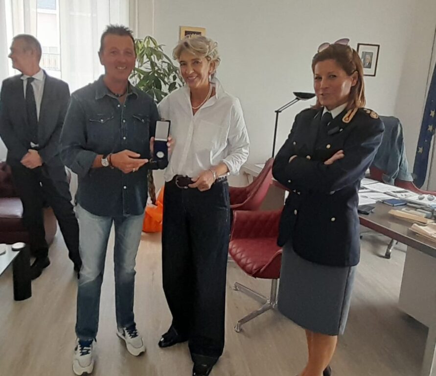 A ricevere la medaglia sono stati l'assistente Capo Tec. Coor. Elena Bonifazio, il commissario Paolo Di Paola, il Sov.C.Coo. Maurizio Caccavale e Marco Vallini, Sost.Com. Paolo Dotto, Sov. Capo Coo. Carmine Madera e l'Ass.Capo Coo. Claudia Rossi