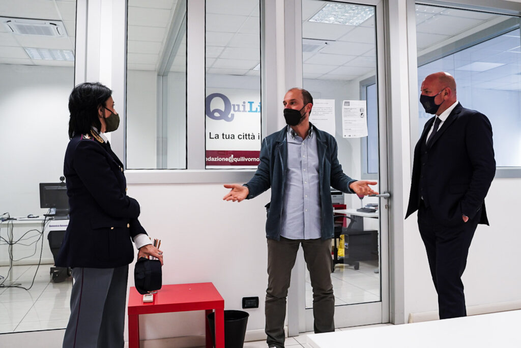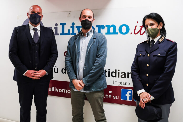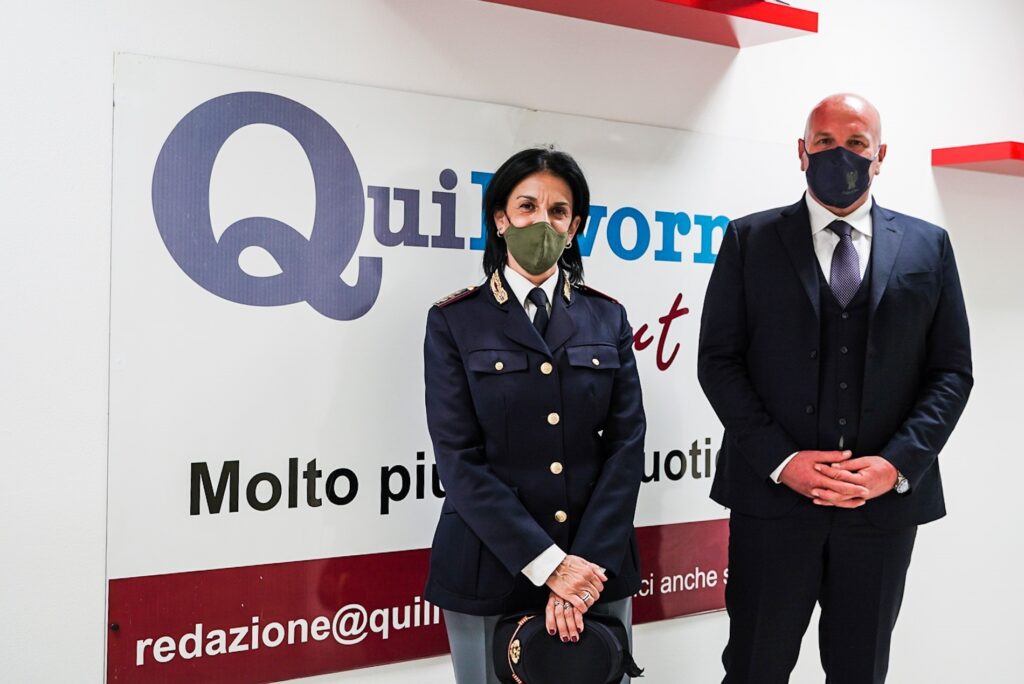 Il questore di Livorno, Roberto Massucci, in carica dal 1° marzo in città, ha fatto visita insieme alla portavoce della questura, Angela Amato (entrambi nella foto di Lorenzo Amore Bianco) alla redazione di QuiLivorno.it all’interno della struttura di coworking della Daxo Lab di via dei Ramai, in località Picchianti, sede del giornale online della città di Livorno. L’incontro tra il numero uno di via Fiume e i giornalisti si è svolto intorno alle 18,30 di lunedì 10 maggio. Massucci ha così incontrato il direttore Michelangelo Sarti e il caporedattore Giacomo Niccolini parlando e confrontandosi con loro della realtà del giornalismo locale e del modo di svolgere la professione di reporter applicata alla cronaca cittadina. L’incontro messo in programma dal questore fa parte di una serie di tappe del nuovo capo della questura all’interno del tessuto cittadino tese a conoscere, incontrare e capire ancora di più il territorio ai fini di poter interagire al meglio con esso e con le persone che ne fanno parte.