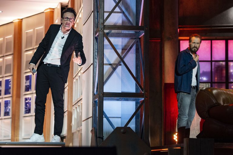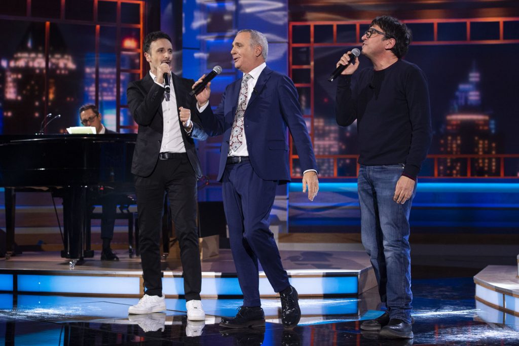 Un vortice di personaggi che si sono alternati nelle voci e nelle espressioni di Fiaschi e Ballantini: dall’allenatore Massimiliano Allegri al presidente della Repubblica Sergio Mattarella, da Papa Francesco a Paolo Brosio, da Leonardo Pieraccioni ai due “Conte“, il mister dell’Inter Antonio e l’ex premier Giuseppe. Il siparietto comico si è concluso con un’esibizione canora dove anche Panariello si è lanciato e lasciato andare sdoganando un suo grande classico: Renato Zero.