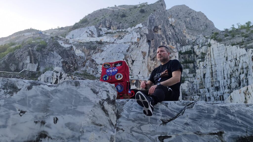 “Il primo corto che ho girato ambientato in un pianeta che non è la terra. Cercavo una location che non rappresentasse la terra e sono andato a fare tanti sopralluoghi e tra questi anche alle cave. Mi sono reso conto che non andava bene per il film ma ne ho approfittato per un video per il mio canale YouTube e per farlo concorrere in qualche festival”.