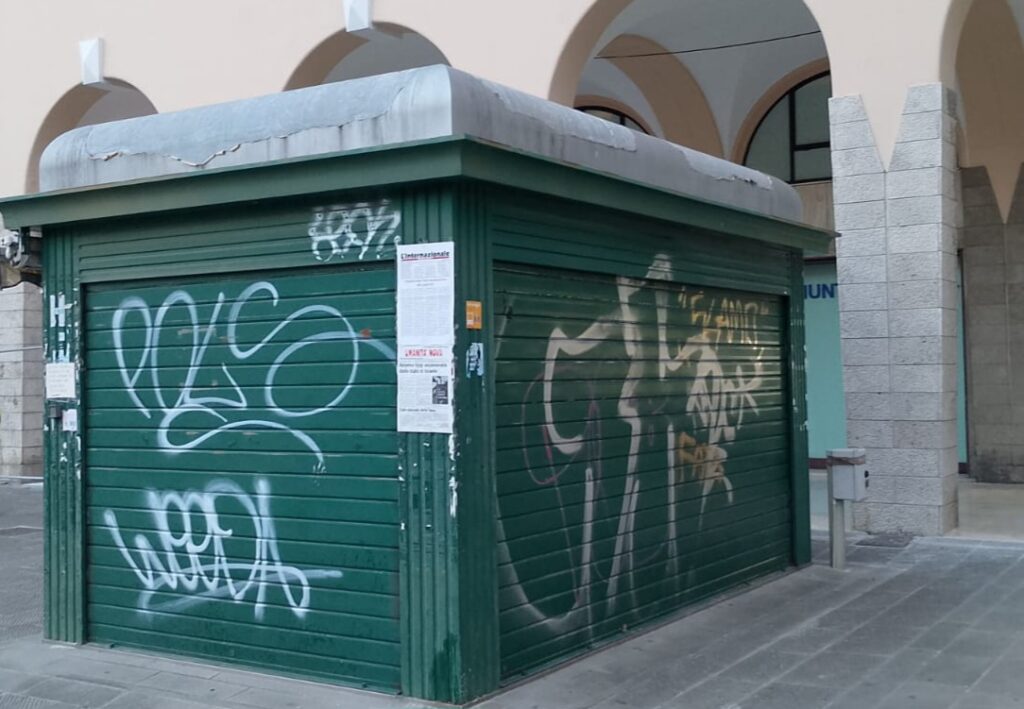 L'edicola tra via Cogorano e via Grande imbrattata (ringraziamo l'edicolante per la disponibilità)