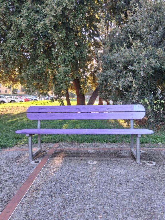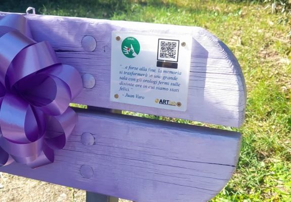 panchina viola nel parco pubblico di via Goito per sensibilizzare sul tema dell’Alzheimer. “…e forse alla fine, la memoria si trasformerà in una grande sala con gli orologi fermi sulle distinte ore in cui siamo stati felici”. Questa è la frase di Juan Varo apposta sulla targa ed è da questa frase che è nato tutto. Spiega l’associazione: “Ci siamo fermati. Su una panchina. Abbiamo pensato alla memoria quella che resta, quella che sfuma, quella che si aggrappa ai dettagli più piccoli: un odore, una voce, una carezza. E abbiamo voluto dare forma a tutto ciò. Perché viola? E’ un colore che racconta la dignità, la fragilità, la speranza. Un gradiente che sfuma, come fanno i ricordi con il tempo. Sedersi lì non è solo riposare. È un atto di ascolto. Di rispetto. È dire, anche senza parole: “Non ti ho dimenticato”. La panchina viola è ora un piccolo luogo di memoria collettiva. Un invito a fermarsi, riflettere, e forse — anche solo per un attimo — ricordare insieme”. La cura e la manutenzione spetteranno all’associazione attraverso un patto di collaborazione con il Comune.