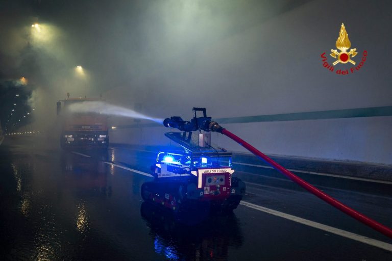 Incidente in galleria, ma è un’esercitazione. Testato il robot-pompiere “Trypper”