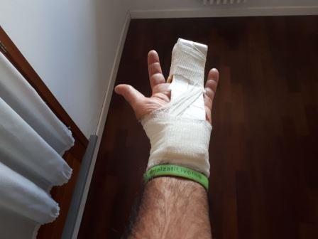 LA MANO SINISTRA DELL’ASSESSORE MORINI DOPO LE CURE RICEVUTE IN PRONTO SOCCORSO