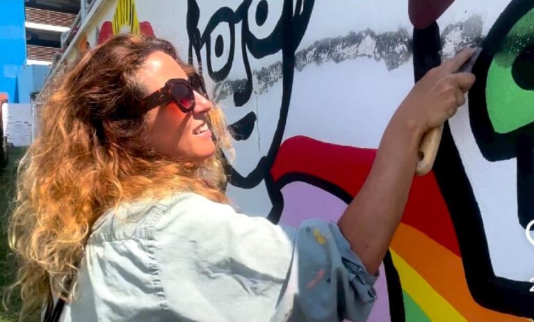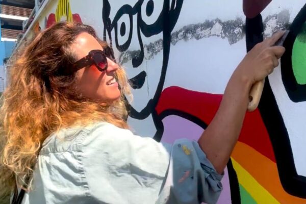 L’artista Giulia Bernini in arte Oblò del Collettivo Uovo Alla Pop che ha realizzato il murale in collaborazione con l’associazione MuraLi, con il patrocinio del Comune di Livorno e l’adesione di Toscana Pride