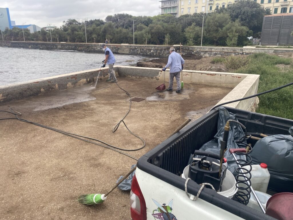 Intervento di pulizia allo Scoglio della Regina dopo la mareggiata