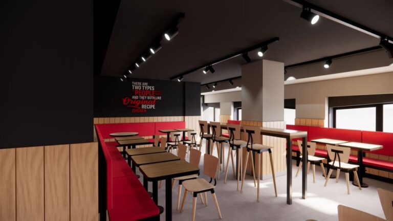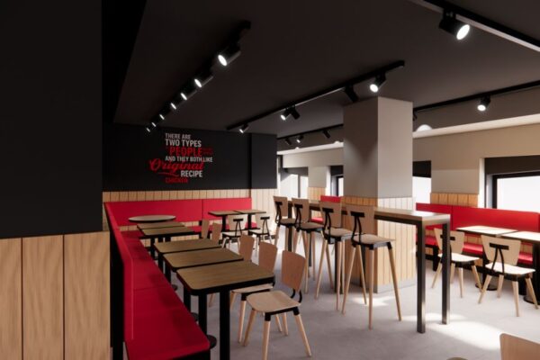 Il rendering della sala di KFC in piazza Grande