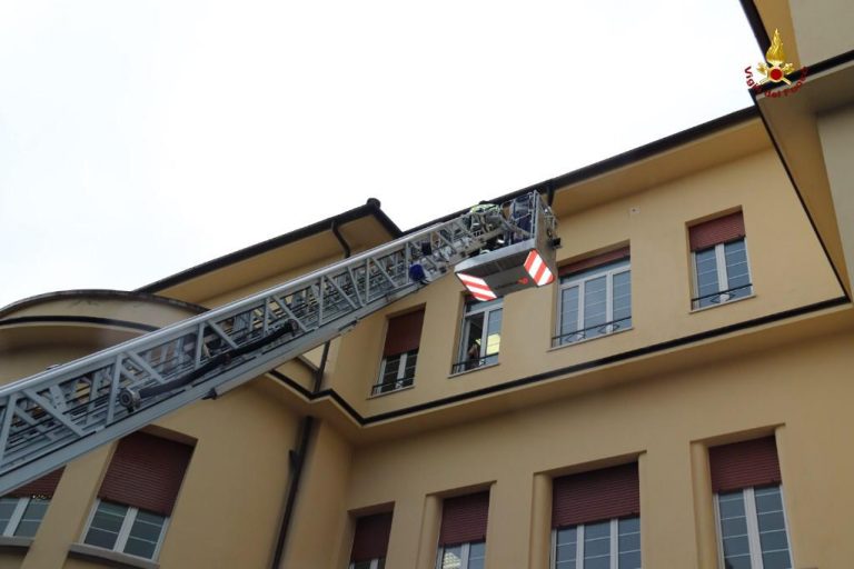 La Befana, a bordo del cestello della scala aerea in dotazione al comando dei pompieri, ha salutato i bambini attraverso le finestre del reparto e ha donato calze e regali ai piccoli pazienti