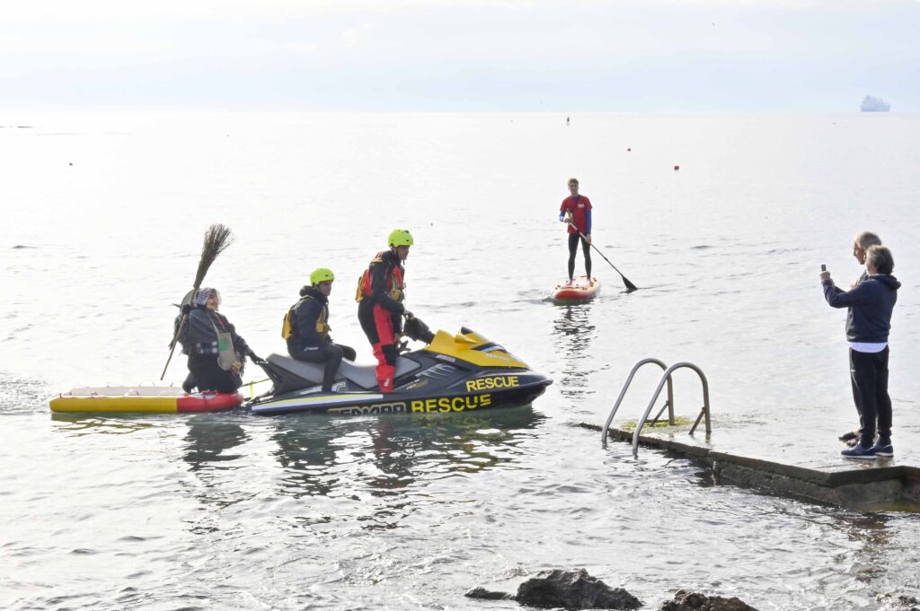 Foto di rito, poi nuotata veloce, doccia, accappatoio e cioccolata calda con panettone. Ecco servito il rito del bagno di Befana per gli Amici del Gabbiano. Non poteva mancare la vecchia signora con la scopa che ha donato caramelle e salutato i più piccoli che erano accorsi per vederla. La Befana è arrivata a bordo della moto d’acqua della FISA, federazione Italiana salvamento acquatico, la federazione che addestra i soccorritori acquatici e dà il proprio supporto a vari eventi che si svolgono in Toscana e non solo