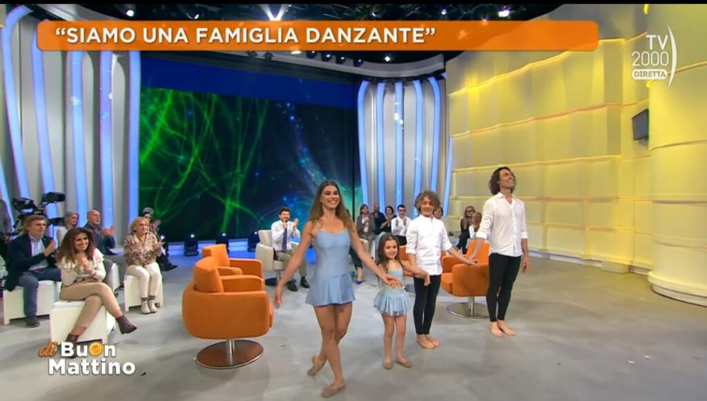 La Famiglia Danzante, composta da Irene Cannata, Niccolò, Angelo (13 anni) e la piccola Agnes (5 anni) Gaggio, ha recentemente fatto nuovamente la sua comparsa nel programma televisivo “Di Buon Mattino“, trasmesso su Tv 2000. La famiglia residente a Tirrenia, ma da anni in viaggio per l’Italia con le sue performance emozionanti, continua a trasmettere messaggi profondi attraverso la danza, dimostrando una capacità unica di unire arte e amore in ogni esibizione si legge in un comunicato stampa. Dopo aver conquistato il pubblico televisivo con esibizioni a “Tu Si Que Vales” su Canale 5 e a “Dalla Strada al Palco” su Rai 2, la Famiglia Danzante ha presentato la nuova coreografia “Inchiostro Bianco” in diretta su “Di Buon Mattino” mercoledì 29 maggio. Questo pezzo cattura l’essenza del loro amore, evocando la purezza e l’innocenza dei ricordi d’infanzia e riflettendo la fluidità e la forza del legame che hanno condiviso nel corso degli anni. È un’ode alla loro storia d’amore, ricca di momenti indimenticabili che continueranno a scrivere insieme. La coreografia, dolce e toccante, si è conclusa con un grande applauso, suscitando l’emozione e l’ammirazione del pubblico. Dopo l’esibizione, i presentatori Grazia Serra e Giacomo Avanzi hanno intervistato Irene e Niccolò, offrendo uno sguardo approfondito sulla realtà della Famiglia Danzante. Con entusiasmo e passione, Irene e Niccolò hanno raccontato di come la loro avventura sia iniziata spontaneamente con la nascita dei loro figli, sottolineando come essere una Famiglia Danzante sia anche un modo per educare i propri figli, insegnando loro l’importanza di prendersi delle responsabilità e di impegnarsi per raggiungere gli obiettivi, tutto in modo naturale e senza sacrifici. Angelo ha saputo tenere la conversazione in modo spigliato e naturale, mentre Agnes ha commosso tutti raccontando che le sono scese le lacrimucce mentre danzava. Per la coppia di danzatori tirrenesi narrare storie attraverso il movimento è una missione fondamentale durante i loro spettacoli. Ogni esibizione diventa un’esperienza indimenticabile, trasformando ogni evento in un momento di pura magia e coinvolgimento. La dolcezza e la spontaneità di Angelo e Agnes hanno aggiunto un ulteriore tocco di autenticità e tenerezza alla loro performance, rendendo l’intera esperienza ancora più speciale. “È stato un grande onore per noi essere invitati a parlare della nostra danza e soprattutto della nostra famiglia in questa trasmissione, per i contenuti e i valori etici che trasmette”, hanno dichiarato i due ballerini che sono anche l’anima della Scuola di Danza Amarindance a Calambrone da 13 anni, offrendo corsi per bambini, ragazzi e adulti. Concludendo, la famiglia continua a emozionare e a sorprendere il pubblico con le sue performance. La bellezza e l’importanza di portare sulla scena tutta la famiglia trasmette un messaggio di amore e unione che ha reso le loro esibizioni ancora più speciali e coinvolgenti. La Famiglia Danzante desidera ringraziare tutta la redazione di “Di Buon Mattino” per l’accoglienza e l’attenzione nei loro riguardi. “Ci siamo sentiti come in una grande famiglia” hanno affermato, riconoscendo il calore e la professionalità con cui sono stati accolti.