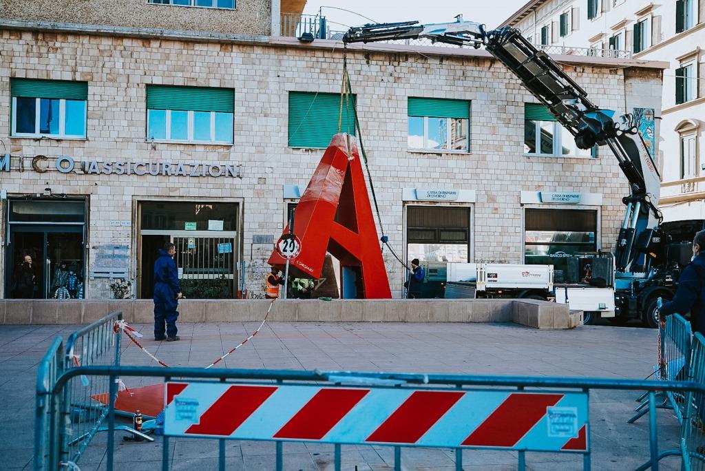 Il restauro, che il Comune aveva commissionato alla ditta Anticorrosiva Industriale Srl di Livorno, si è concluso nei tempi previsti (due settimane). Le lavorazioni nel laboratorio-officina sono state impegnative in quanto la struttura interna del manufatto metallico, realizzato un decennio fa dal maestro Renato Spagnoli, si è rivelata più complessa del previsto. Tutto comunque è andato a buon fine: la vernice, deturpata da graffi e scritte, è stata rimossa, e si provveduto alla zincatura protettiva di tutta la struttura, alla stesa del primer e alla verniciatura con colore originario, con prodotti che garantiscono elevata resistenza all’abrasione e agli agenti atmosferici. L’opera d’arte è stata ricollocata nella sua sede originaria. Ora tocca al restauro della “Grande V”, l’opera realizzata dall’artista Fabrizio Breschi e posizionata sul lato est di piazza Attias, rivolta verso piazza della Vittoria.