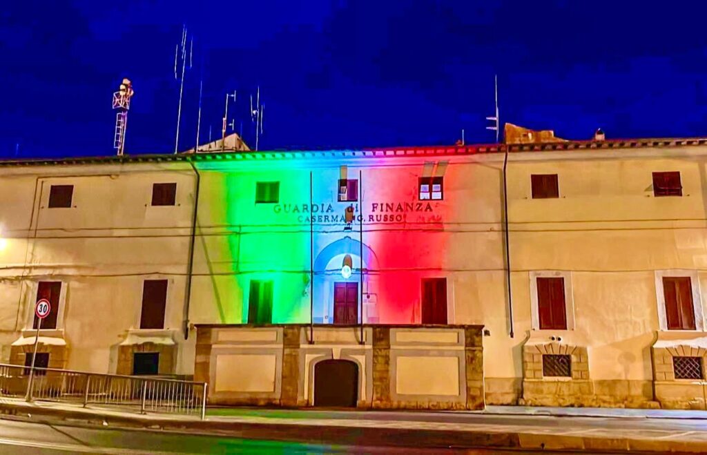 Nell’occasione la caserma Russo è stata illuminata con il Tricolore italiano.
