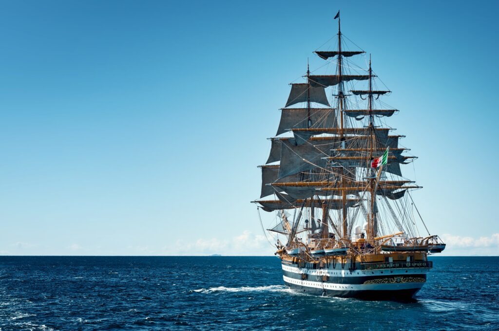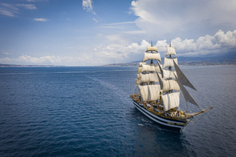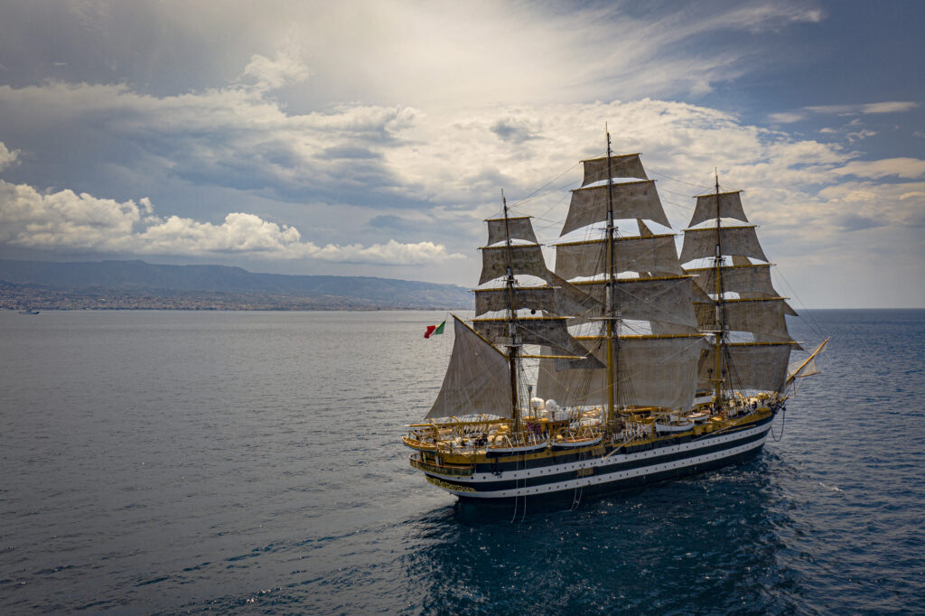 APPROFONDIMENTI – La nave fu progettata da Francesco Rotundi, ingegnere e allora tenente colonnello del Genio Navale, alla fine degli anni ‘20. Il Vespucci venne impostato nel cantiere di Castellammare di Stabia il 30 maggio del 1930, varato il 22 Febbraio 1931 e consegnato alla Marina Militare il 2 luglio dello stesso anno. Dal punto di vista tecnico-costruttivo l’Amerigo Vespucci è una Nave a Vela con motore; dal punto di vista dell’attrezzatura velica è “armata a Nave”, quindi con tre alberi verticali (da prora verso poppa: trinchetto, maestra e mezzana) più il bompresso obliquo a prora, a tutti gli effetti un quarto albero. Il Vespucci impiega prevalentemente 24 vele, 14 quadre infierite sui pennoni e 10 di taglio (i fiocchi a prora, tra il bompresso e il trinchetto; gli stralli tra gli alberi verticali e la randa a poppa, tra il boma e il picco agganciati alla mezzana). L’altezza della sommità dell’albero di maestra rispetto alla linea di galleggiamento è di 54 metri, la superficie velica complessiva supera i 2.700 metri quadrati e la lunghezza di tutte le manovre che corrono per la Nave e l’alberata è maggiore di 30 chilometri. L’equipaggio è normalmente composto da 264 militari, tra donne e uomini, ma nel periodo estivo con l’arrivo degli Allievi e dello Staff dell’Accademia Navale la consistenza a bordo può superare le 400 persone. Dal 2014 al 2016 ha effettuato un significativo periodo di sosta lavori per l’ammodernamento, che ha permesso di migliorare le capacità operative e le sistemazioni logistiche. Anche l’apparato di generazione dell’energia elettrica e quello di propulsione sono stati completamente sostituiti con prodotti tecnologicamente avanzati, più efficienti e rigorosamente orientati alla tutela dell’ambiente. La Nave scuola Amerigo Vespucci è Ambasciatrice dell’UNICEF da settembre 2007, mentre il 22 giugno dello scorso anno ha ricevuto dall’UNESCO il vessillo “U.N. Decade of Ocean Science”.