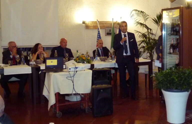 Premiato Gino Baldi per la presentazione di due nuovi soci e celebrato il conferimento a Giuseppina Bombaci, come finalista, del Premio Cittadino Europeo 2020, è stata la volta dell’ingresso, in trasferimento da Vicenza, del nuovo socio avvocato Stefania Pesce, 405° anagrafica di un club in essere dal 1956.